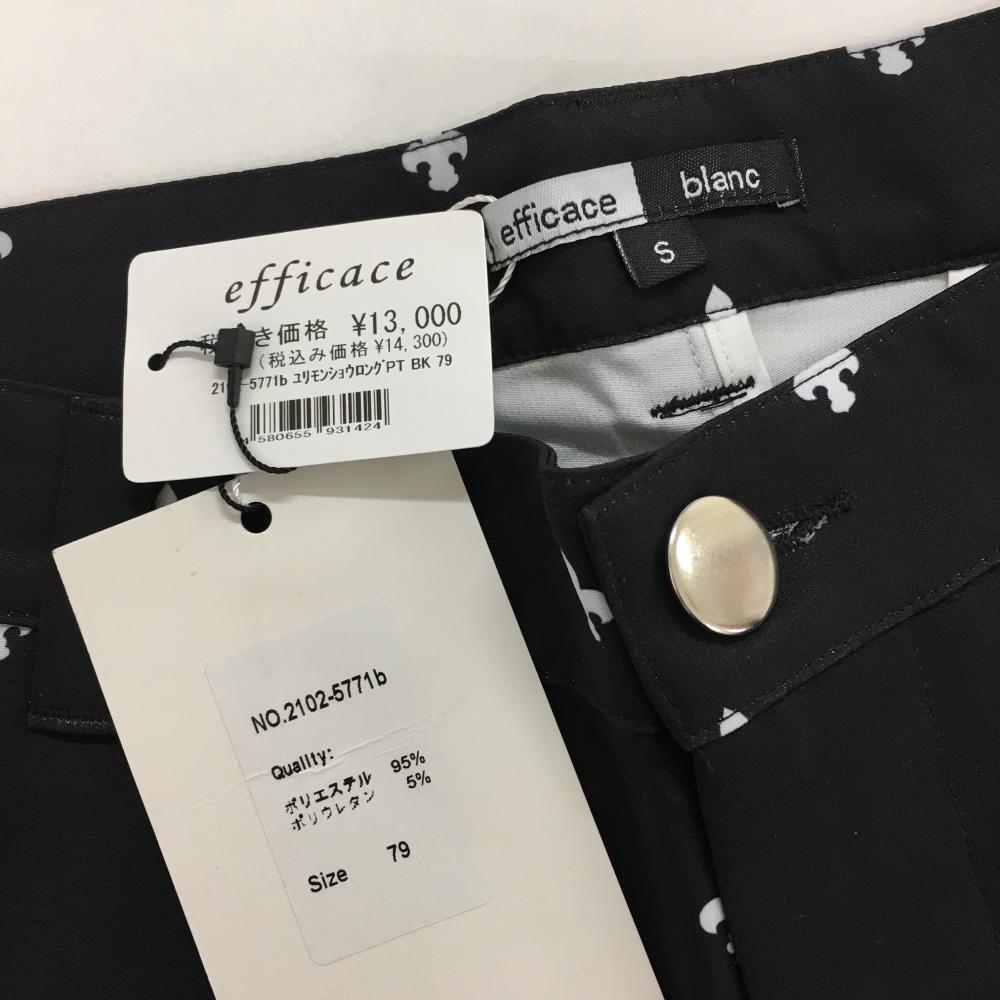 【新品】エフィカスブラン パンツ 黒×白 総柄 ユリ紋章 メンズ S ゴルフウェア efficace