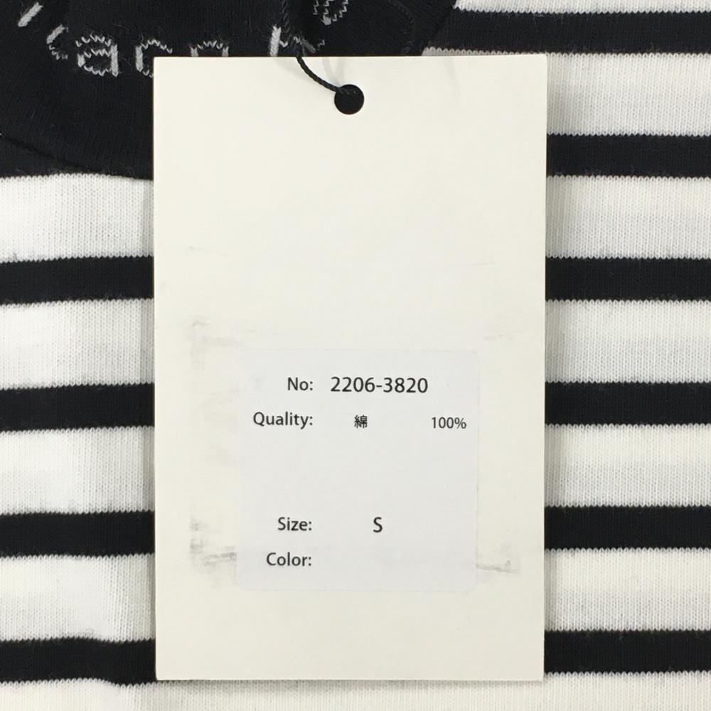 【新品】エフィカスブラン 半袖ハイネックシャツ 白×黒 ボーダー 綿100% レディース S ゴルフウェア efficace
