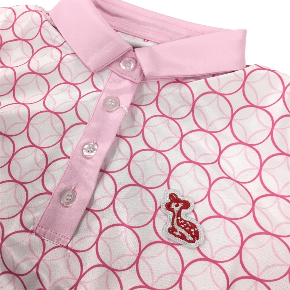 【新品】エフィカス 半袖ポロシャツ 白×ピンク 総柄 リングジオメトリック レディース S ゴルフウェア efficace