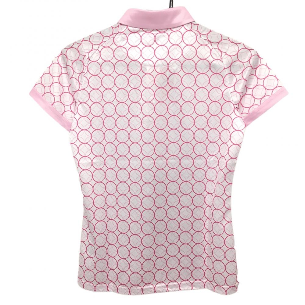 【新品】エフィカス 半袖ポロシャツ 白×ピンク 総柄 リングジオメトリック レディース S ゴルフウェア efficace