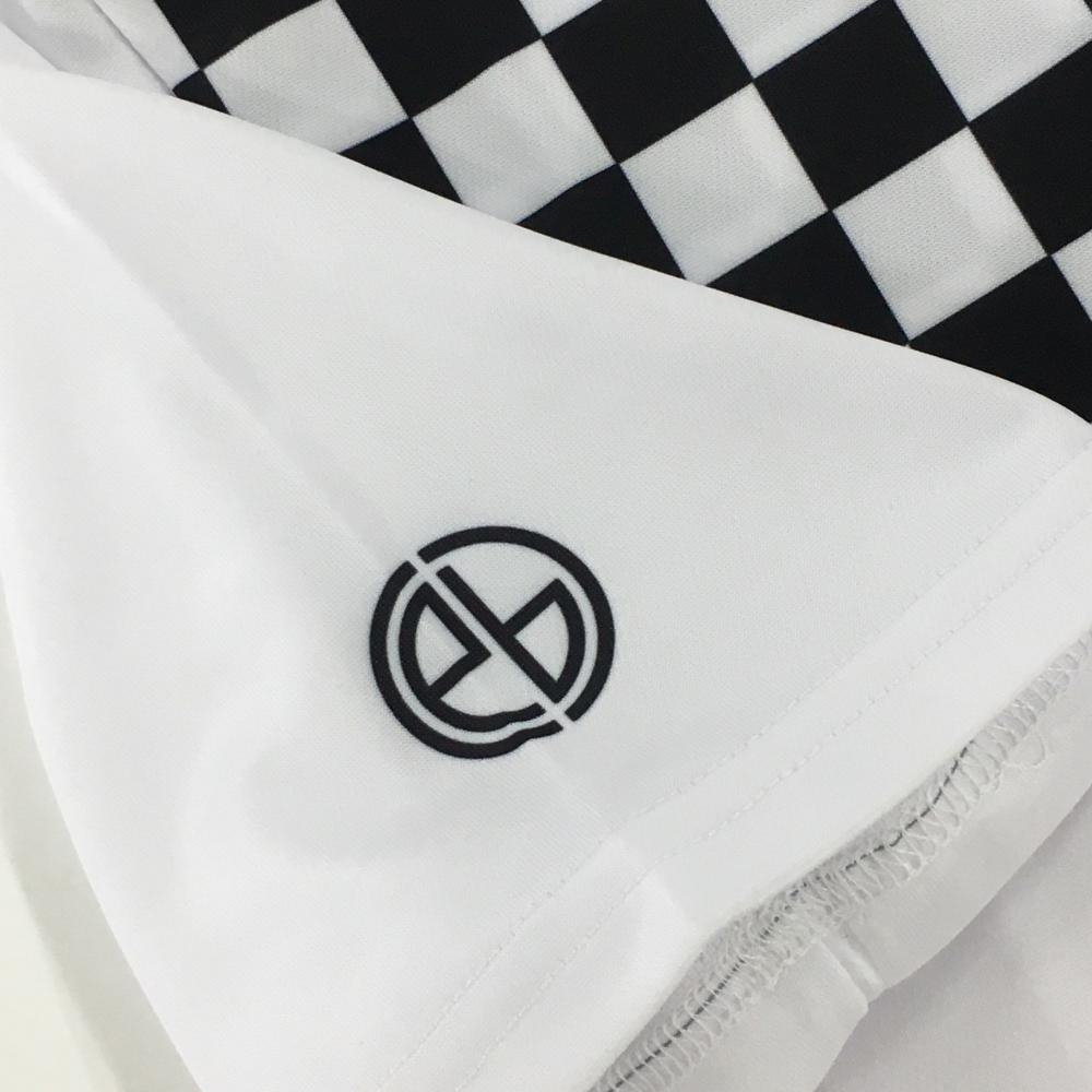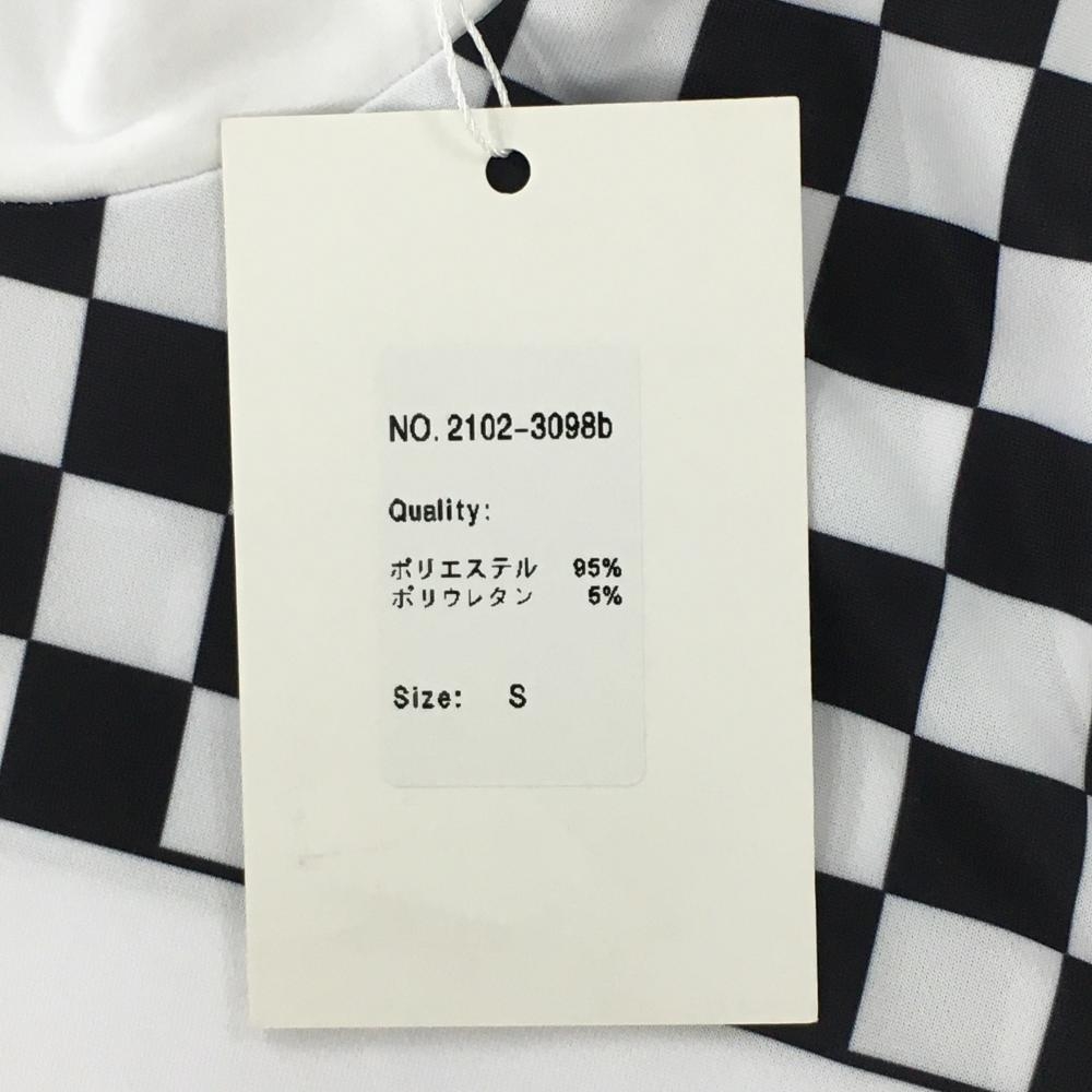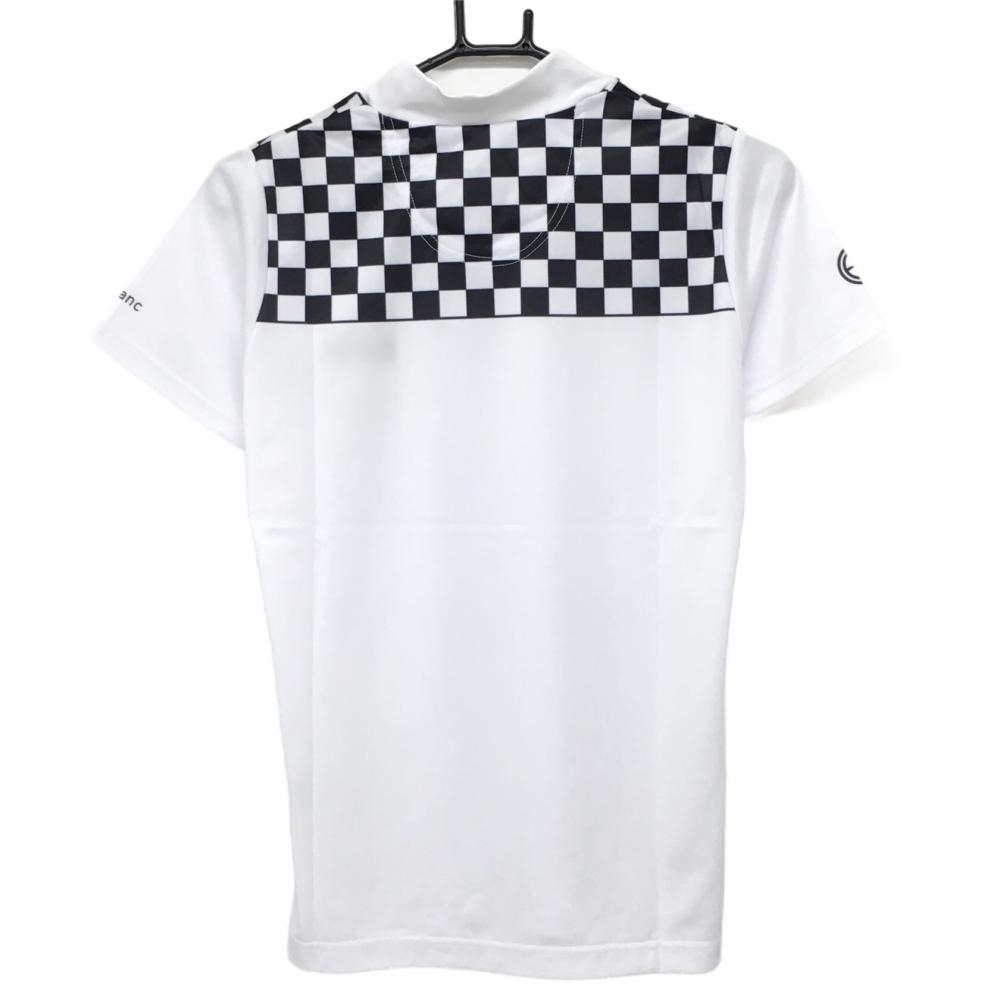 【新品】エフィカス 半袖ハイネックシャツ 白×黒 肩ブロックチェック レディース S ゴルフウェア efficace