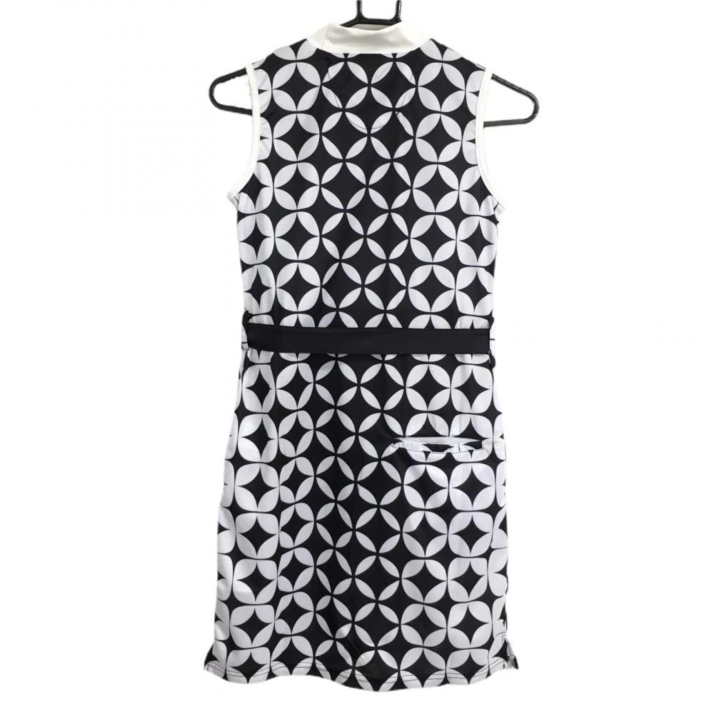 【新品】エフィカスブラン ノースリーブハイネックワンピース 黒×白 総柄 レディース S ゴルフウェア efficace