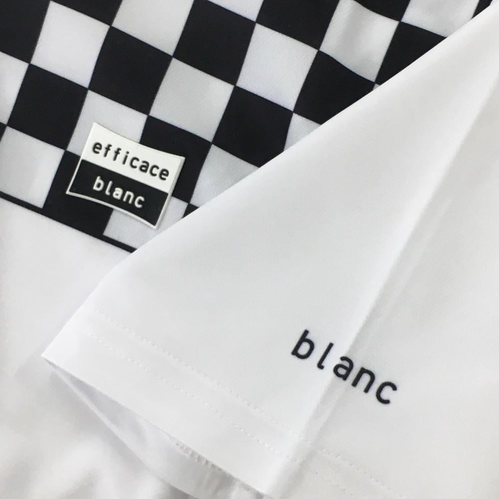 【新品】エフィカス 半袖ハイネックシャツ 白×黒 肩ブロックチェック レディース L ゴルフウェア efficace