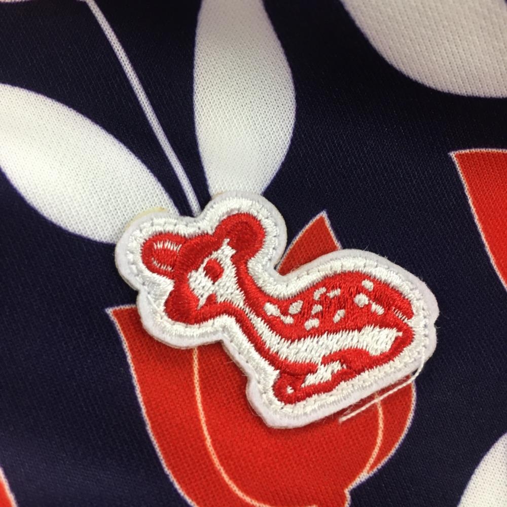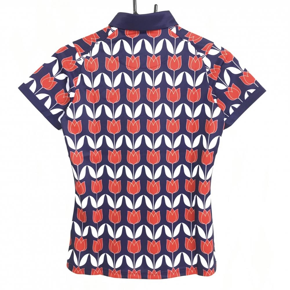 【新品】エフィカス 半袖ポロシャツ ネイビー×レッド チューリップ総柄 レディース 1 ゴルフウェア efficace