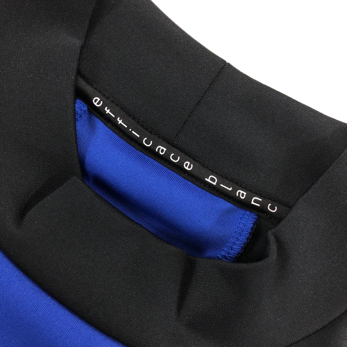 【新品】エフィカスブラン 半袖ハイネックシャツ 黒×ブルー センターライン ストレッチ プリント レディース S ゴルフウェア efficace