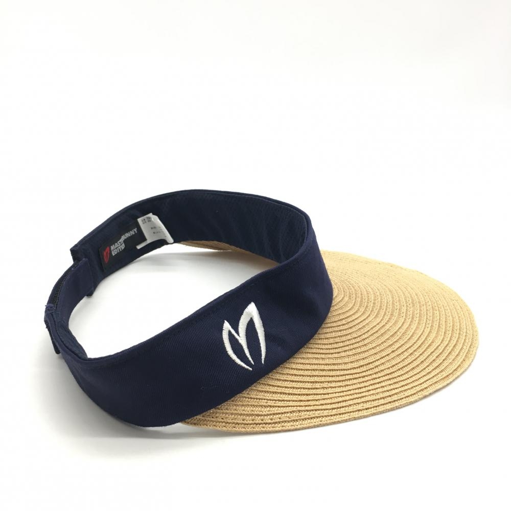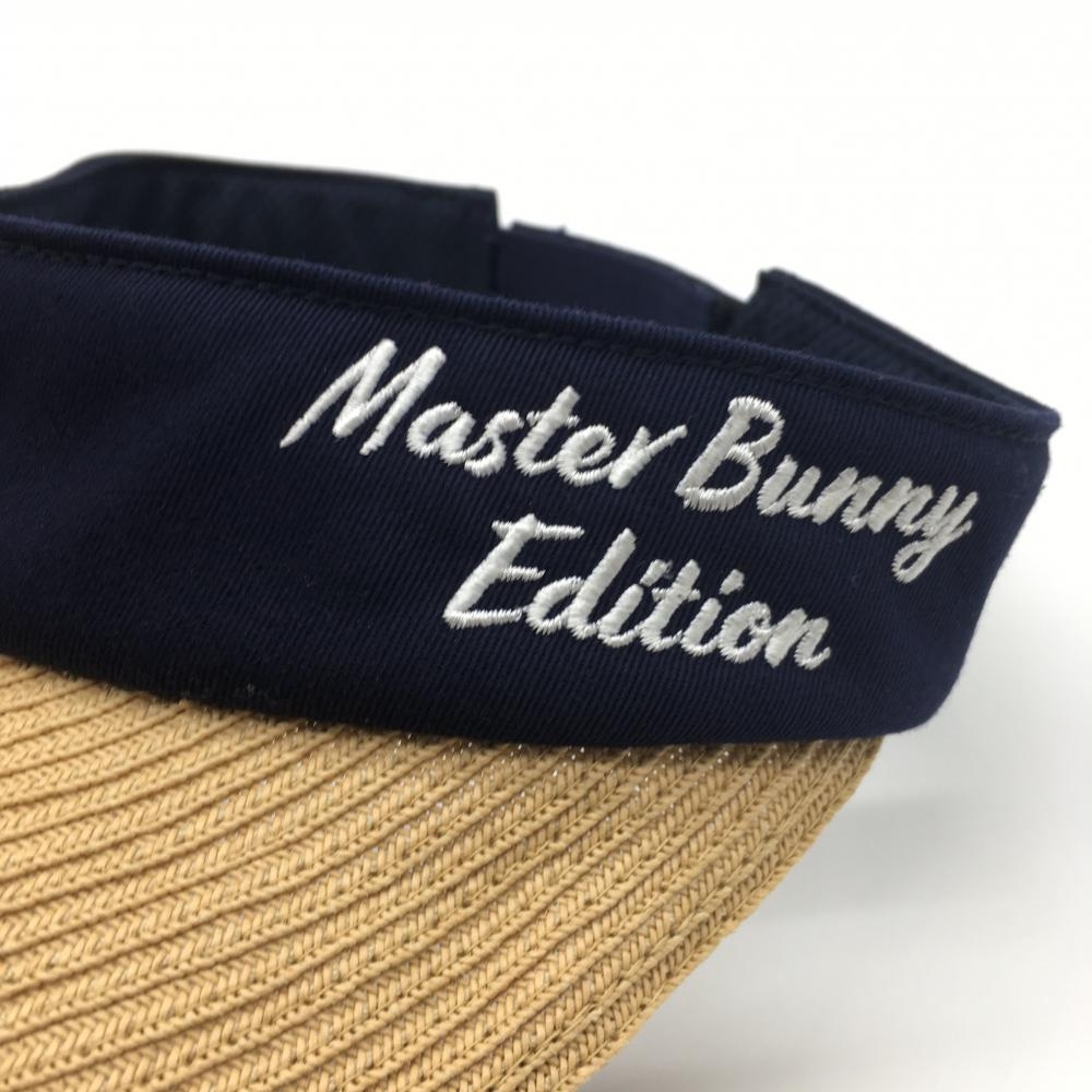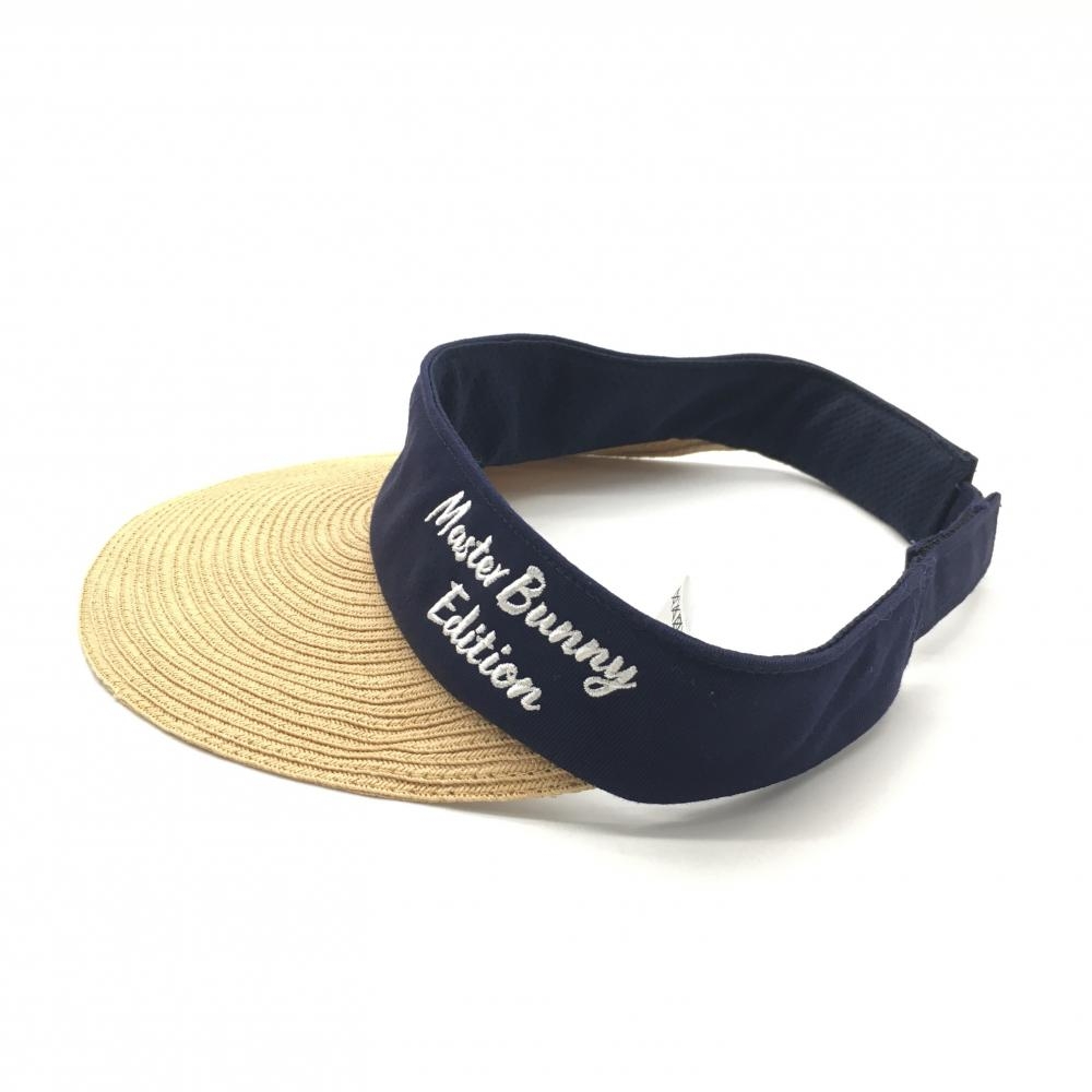 【美品】マスターバニー つば広サンバイザー ライトブラウン×ネイビー ロゴ刺しゅう レディース FR ゴルフウェア MASTER BUNNY EDITION