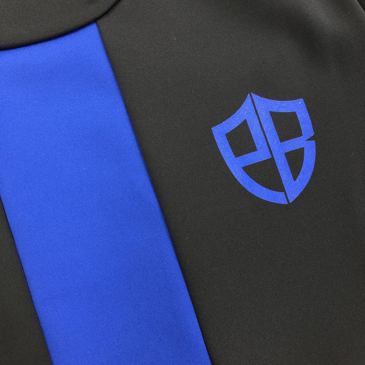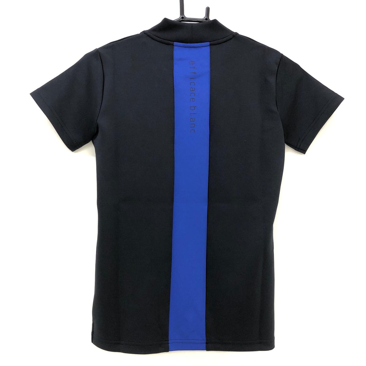 【新品】エフィカスブラン 半袖ハイネックシャツ 黒×ブルー センターライン ストレッチ プリント レディース S ゴルフウェア efficace