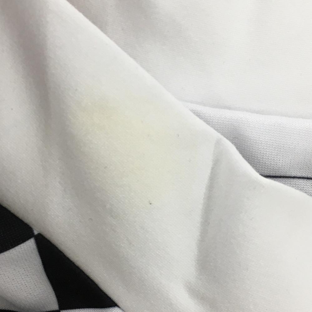 【新品】エフィカス 半袖ハイネックシャツ 白×黒 肩ブロックチェック レディース M ゴルフウェア efficace