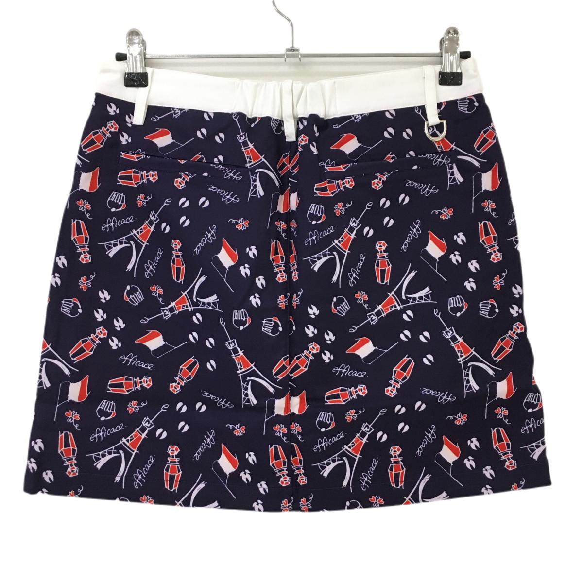 【新品】エフィカス スカート ネイビー×白 エッフェル塔 国旗 内側インナーパンツ レディース L ゴルフウェア efficace