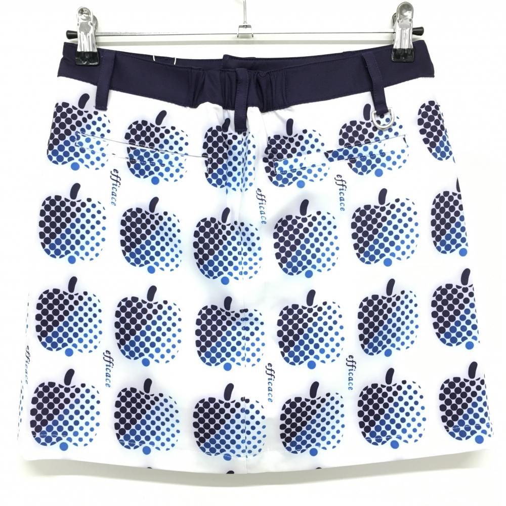 【新品】エフィカス スカート 白×ネイビー ドットアップル柄 内側インナーパンツ レディース M ゴルフウェア efficace