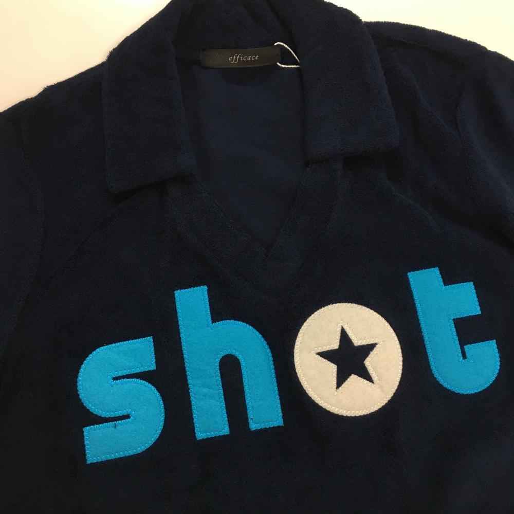 【新品】エフィカス 半袖スキッパーシャツ ネイビー×ライトブルー パイル地 フロントワッペン レディース S ゴルフウェア efficace