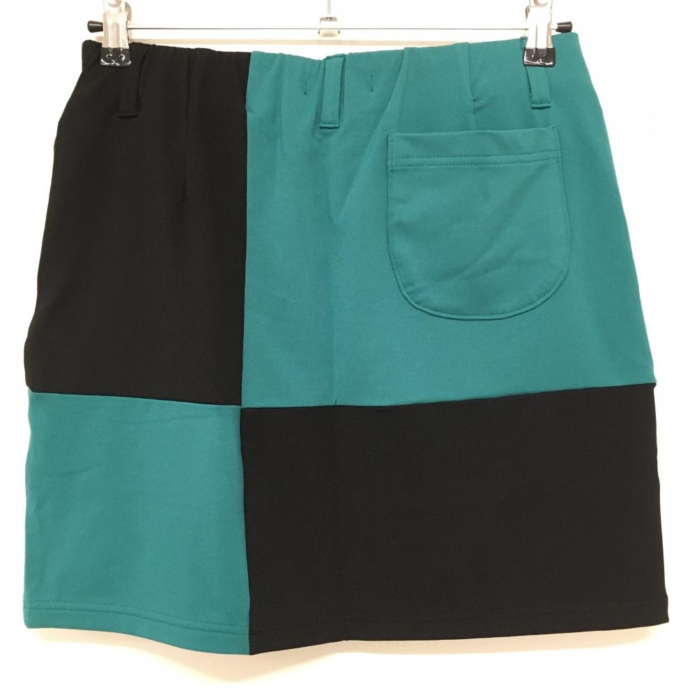 【新品】エフィカスブラン ストレッチスカート ブルーグリーン×黒 裏起毛 ウエストゴム レディース L ゴルフウェア efficace
