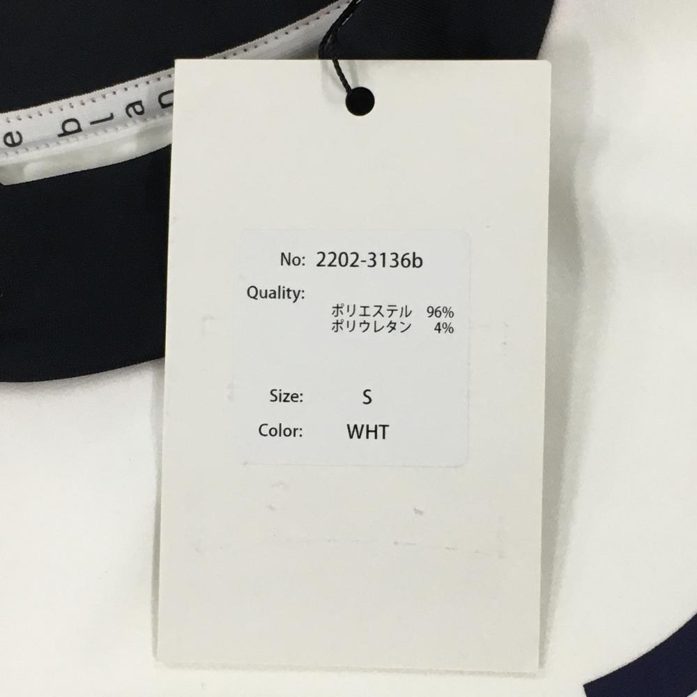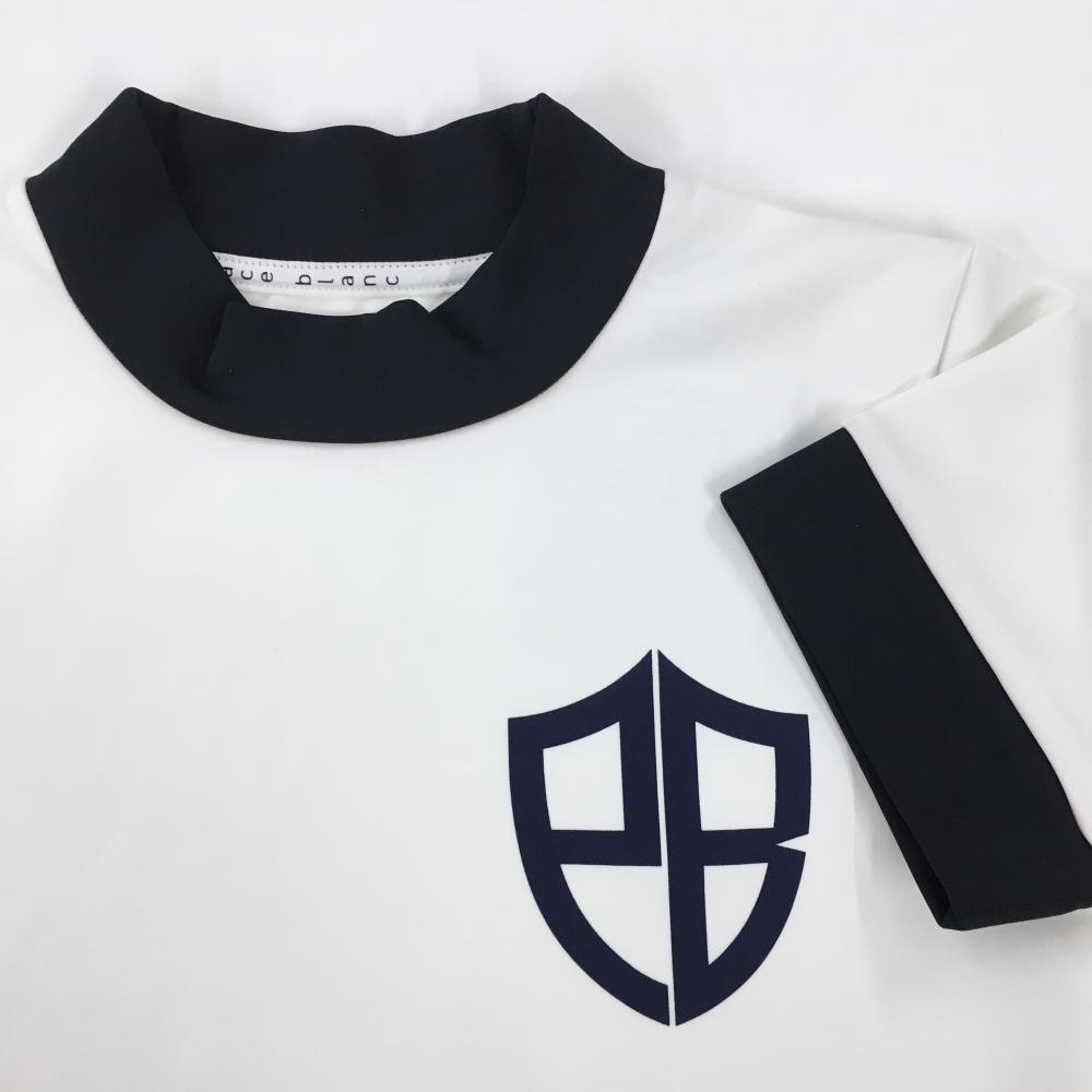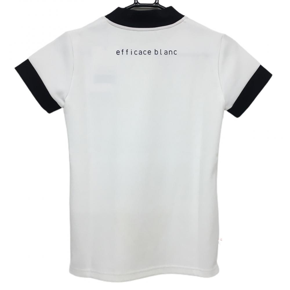 【新品】エフィカスブラン 半袖ハイネックシャツ 白×ダークネイビー ストレッチ プリント レディース S ゴルフウェア efficace
