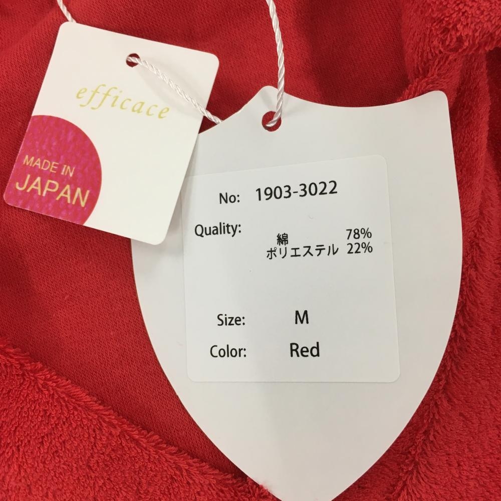 【新品】エフィカス 半袖スキッパーシャツ レッド×ライトブルー パイル地 フロントワッペン レディース M ゴルフウェア efficace