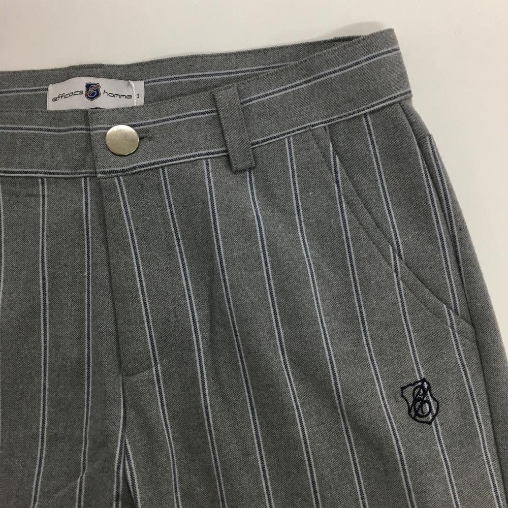 【新品】エフィカスオム パンツ グレー×ネイビー ストライプ 秋冬 ストレッチ メンズ 79 ゴルフウェア efficace