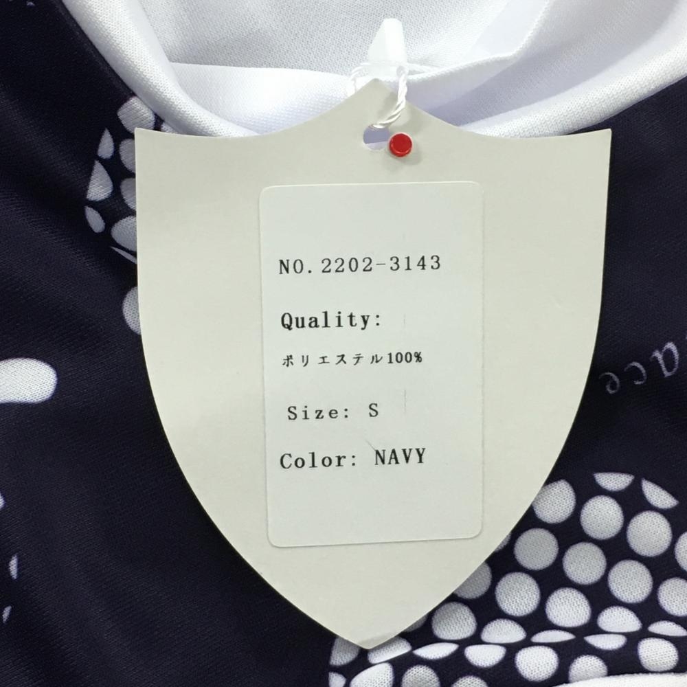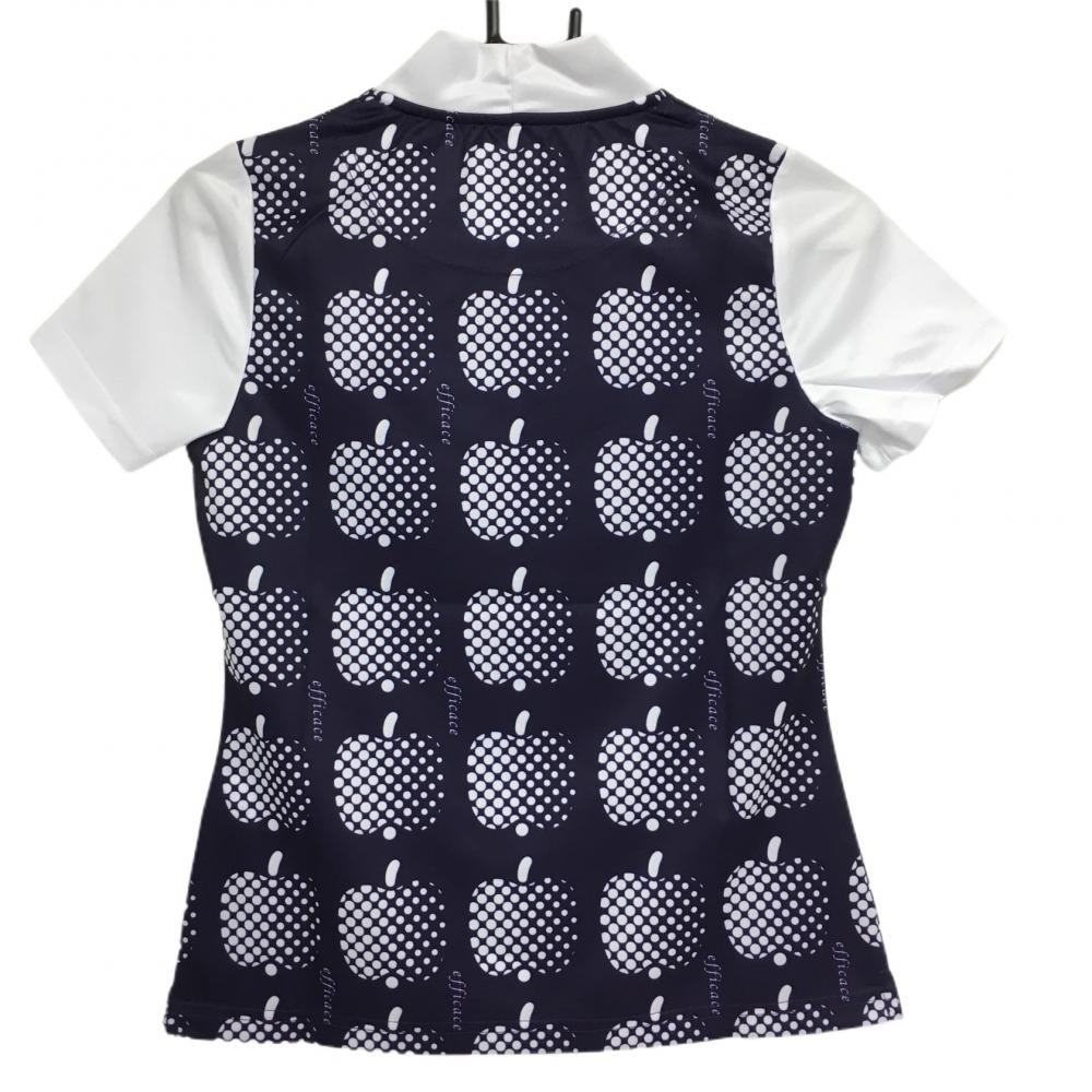 【新品】エフィカス 半袖ハイネックシャツ ネイビー×白 ドットアップル柄 レディース S ゴルフウェア efficace