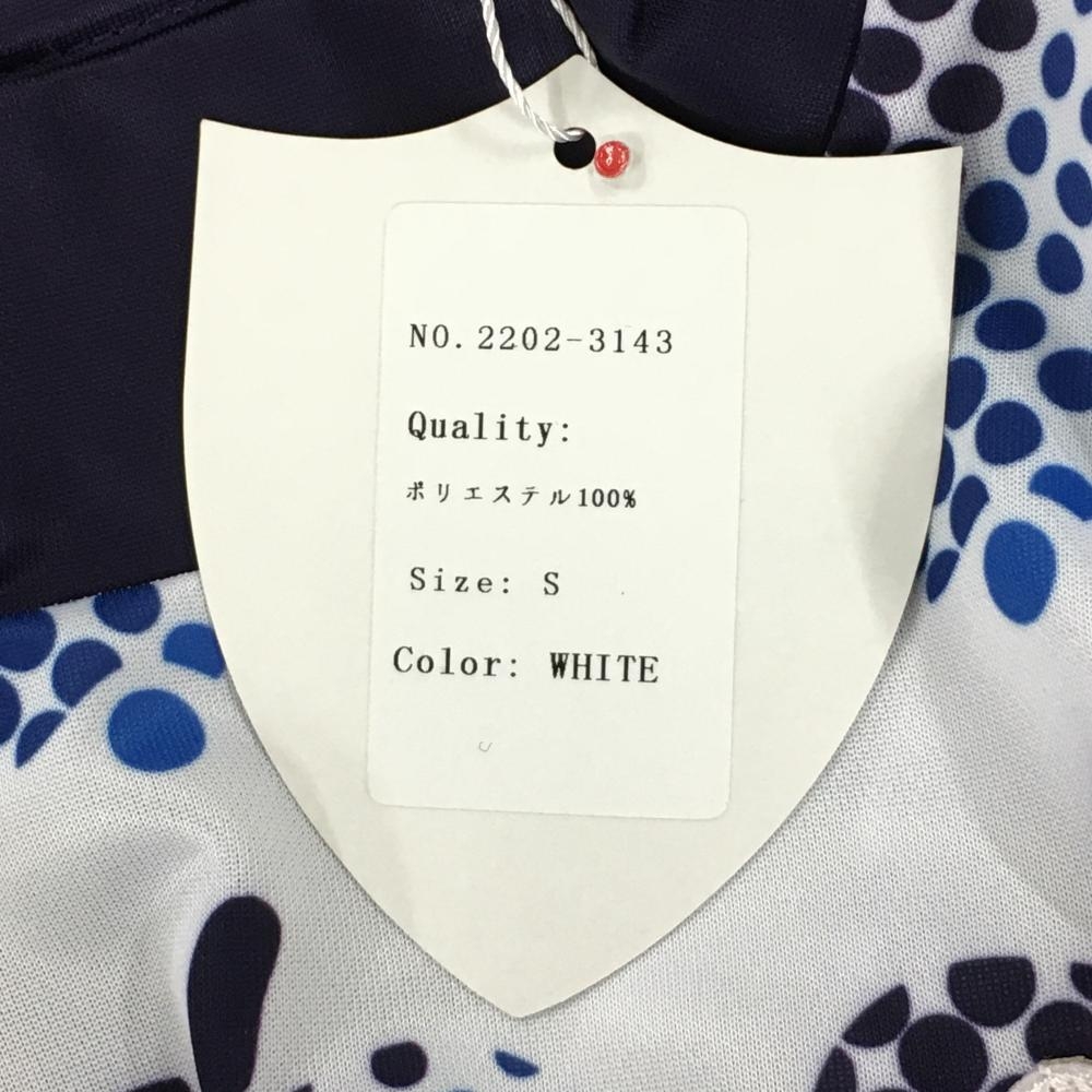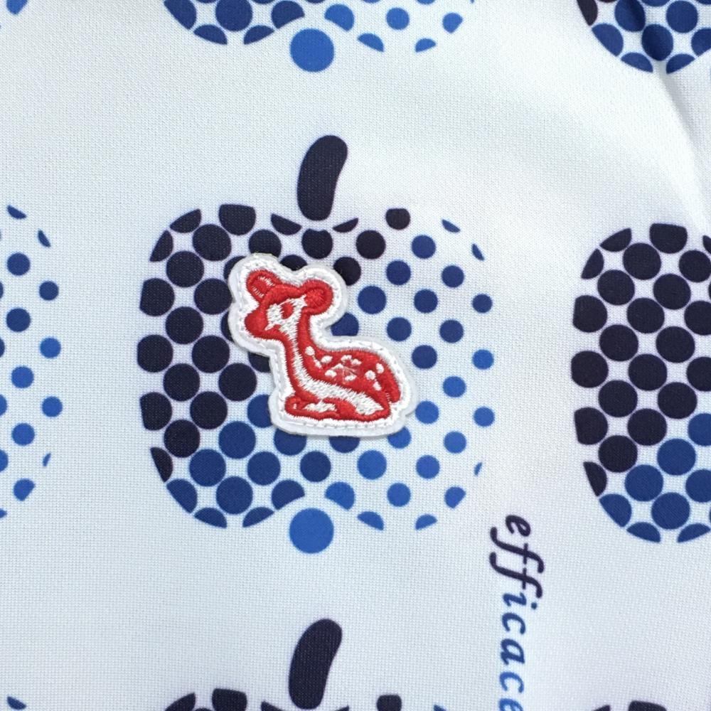 【新品】エフィカス 半袖ハイネックシャツ 白×ネイビー ドットアップル柄 レディース S ゴルフウェア efficace