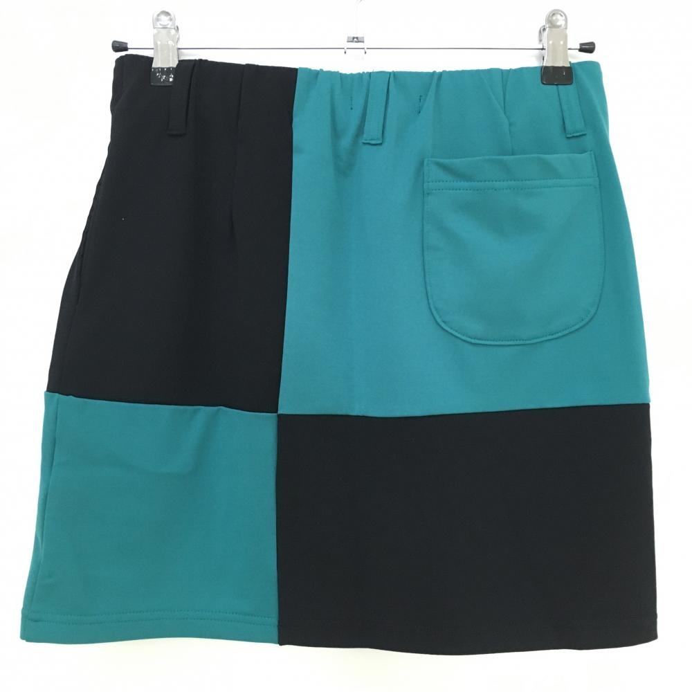 【新品】エフィカスブラン ストレッチスカート 黒×ブルーグリーン 裏起毛 ウエストゴム レディース M ゴルフウェア efficace