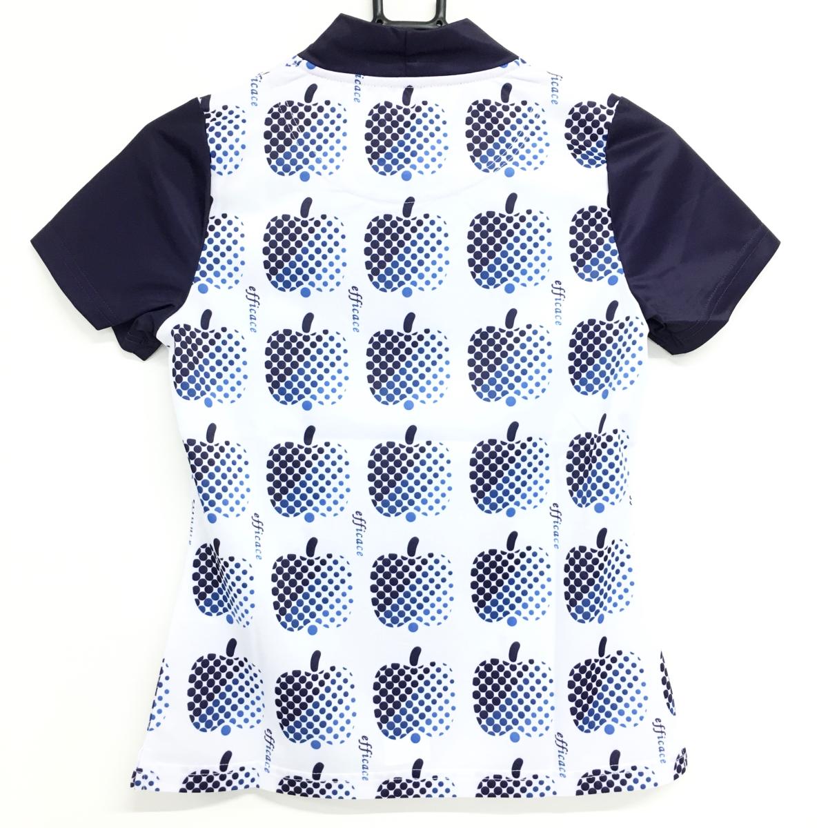 【新品】エフィカス 半袖ハイネックシャツ 白×ネイビー ドットアップル柄 レディース S ゴルフウェア efficace