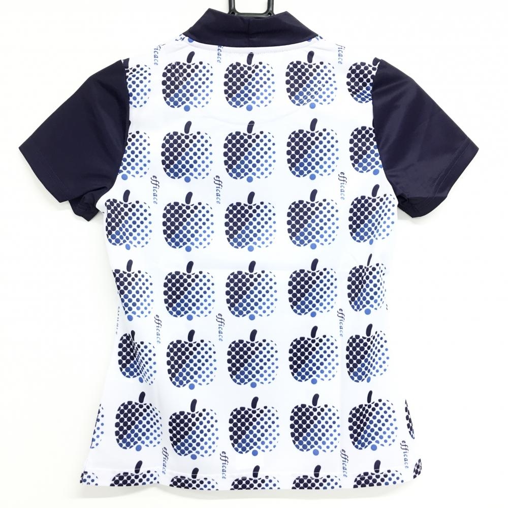 【新品】エフィカス 半袖ハイネックシャツ 白×ネイビー ドットアップル柄 レディース S ゴルフウェア efficace