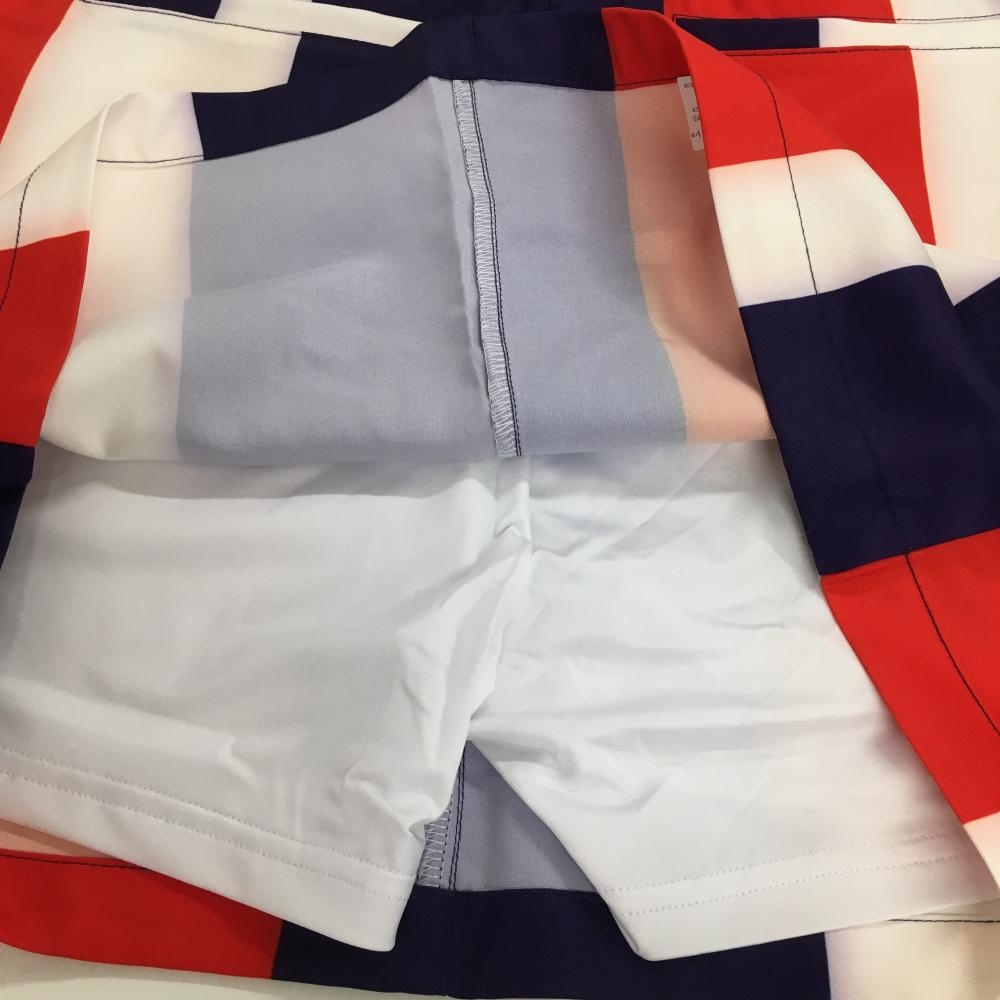 【新品】エフィカス スカート 白×パープル×レッド ストライプ 内側インナーパンツ レディース LL ゴルフウェア efficace