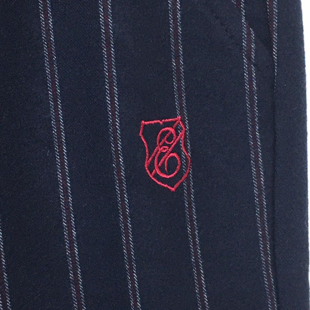 【新品】エフィカスオム パンツ ネイビー×ボルドー ストライプ 秋冬 ストレッチ 裾未処理 メンズ 79 ゴルフウェア efficace