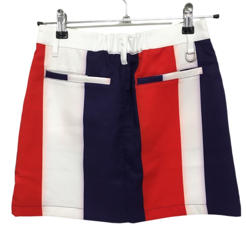 【新品】エフィカス スカート 白×パープル×レッド ストライプ 内側インナーパンツ レディース S ゴルフウェア efficace