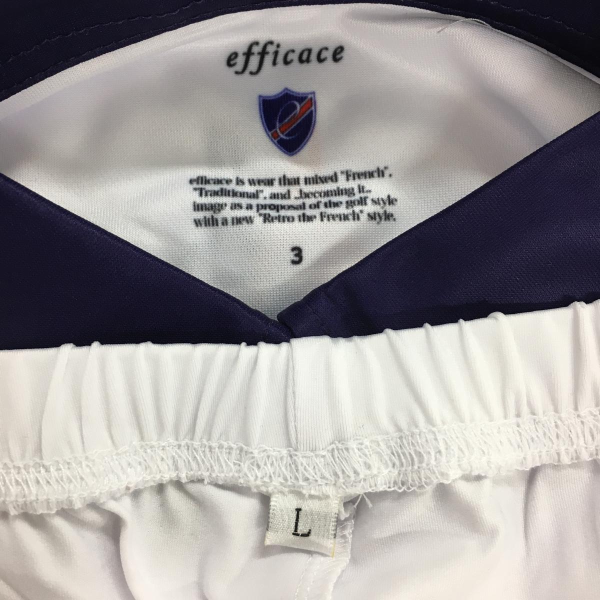 【新品】エフィカス 半袖ポロワンピース 白×パープル ダブルエッフェル ベルト・インナーパンツ付き レディース L ゴルフウェア efficace