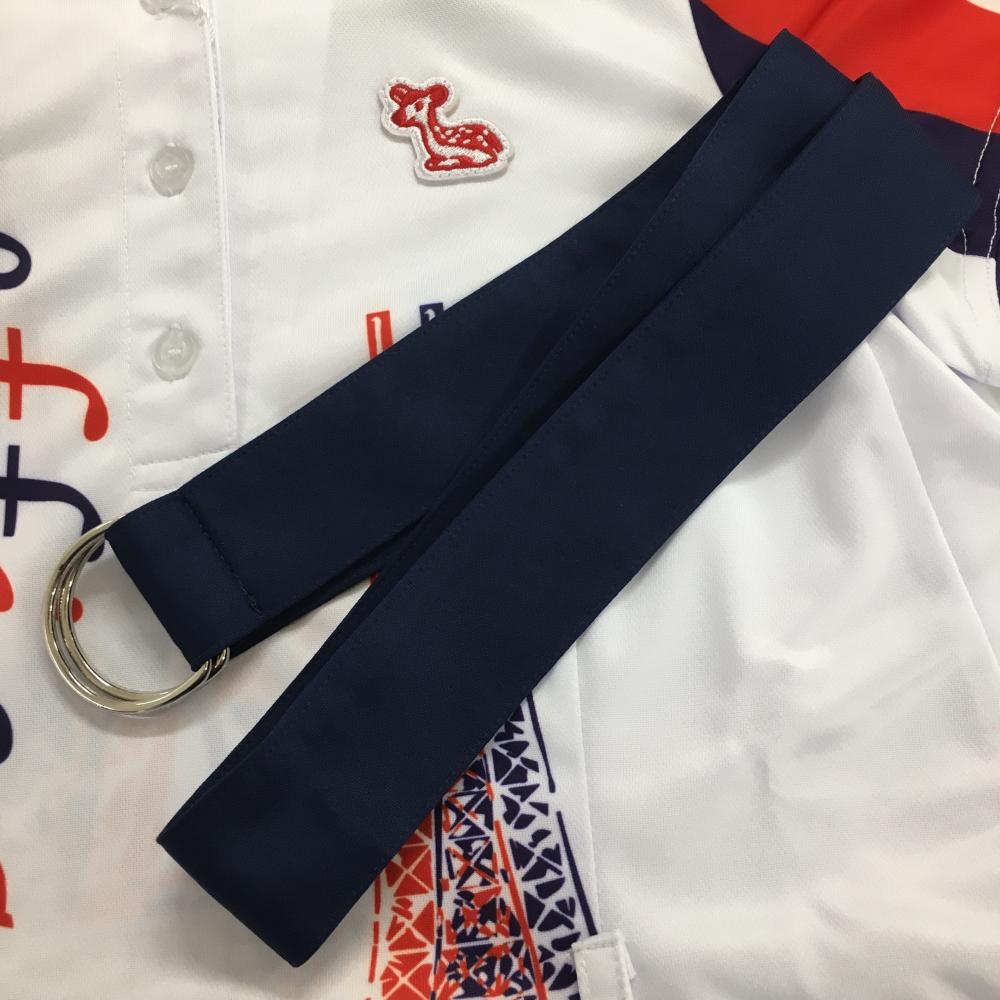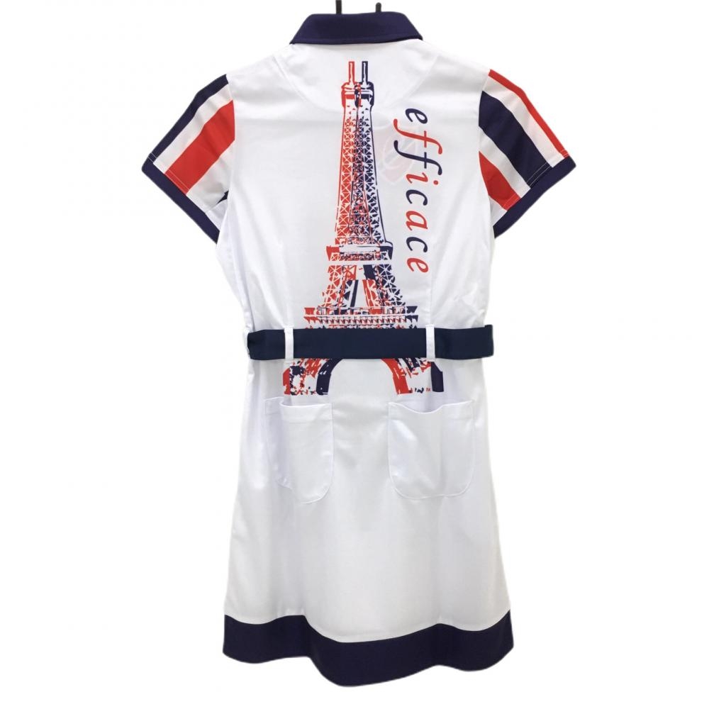 【新品】エフィカス 半袖ポロワンピース 白×パープル ダブルエッフェル ベルト・インナーパンツ付き レディース S ゴルフウェア efficace