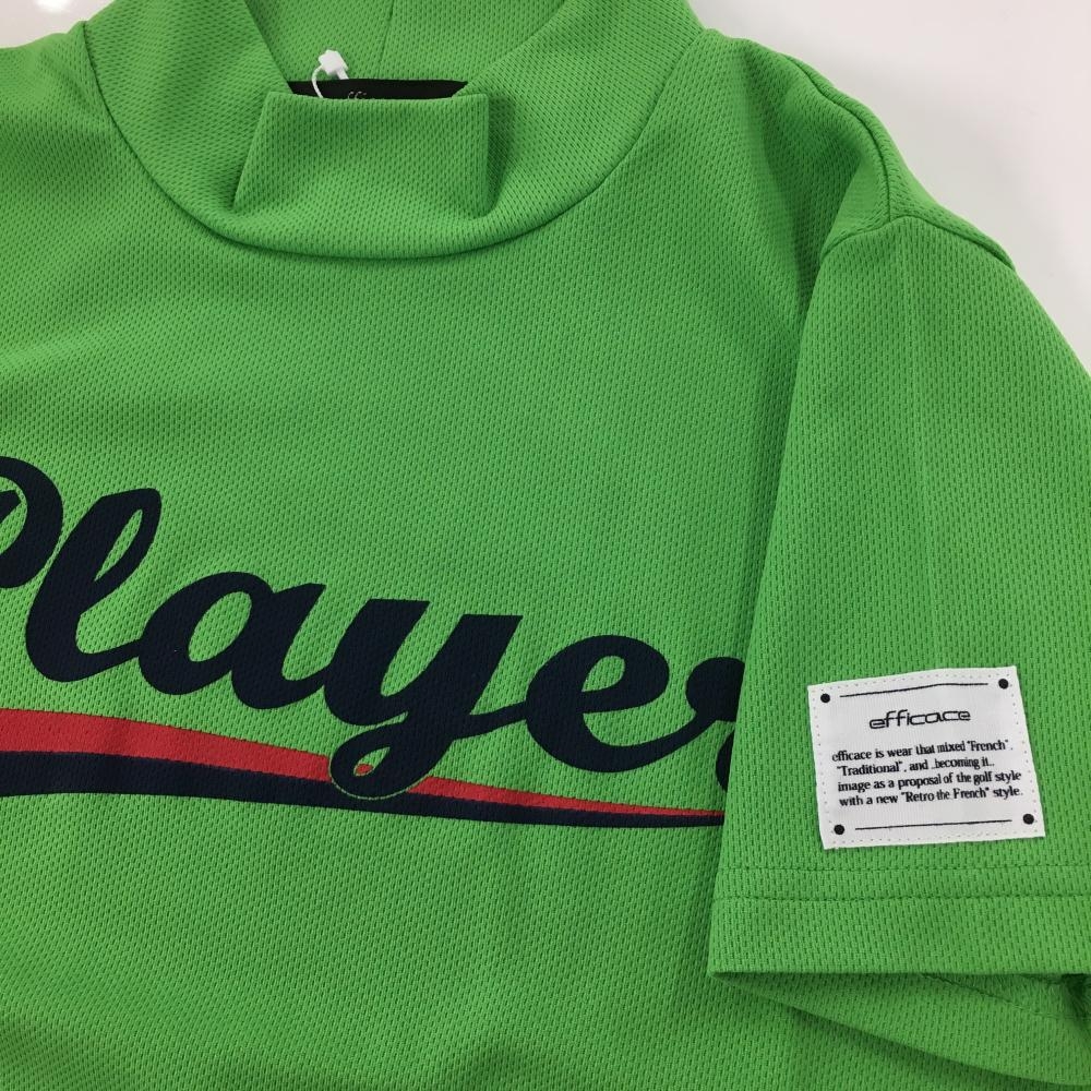 【新品】エフィカス 半袖ハイネックシャツ グリーン×ネイビー 吸水速乾 レディース S ゴルフウェア efficace