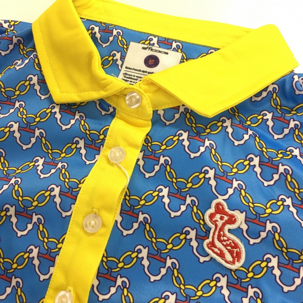 【新品】エフィカス ノースリーブワンピース ライトブルー×イエロー マリンチェーン柄 レディース M ゴルフウェア efficace