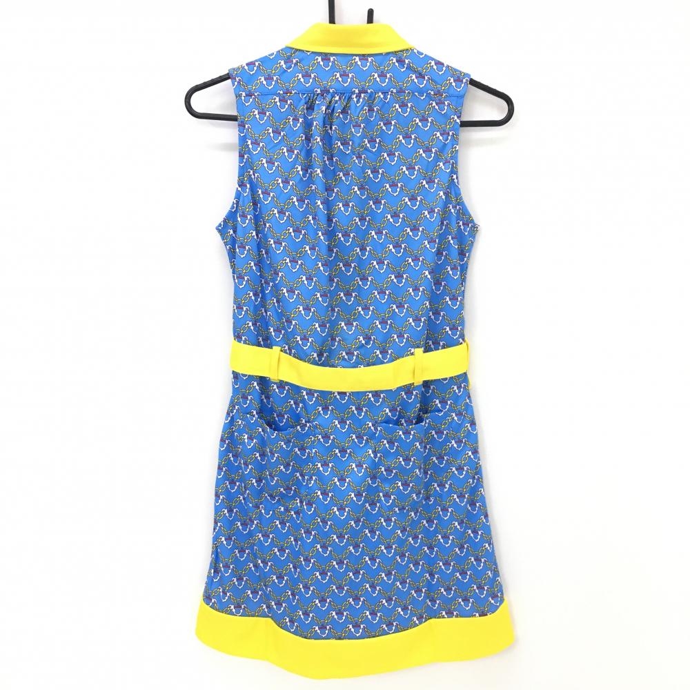 【新品】エフィカス ノースリーブワンピース ライトブルー×イエロー マリンチェーン柄 レディース M ゴルフウェア efficace