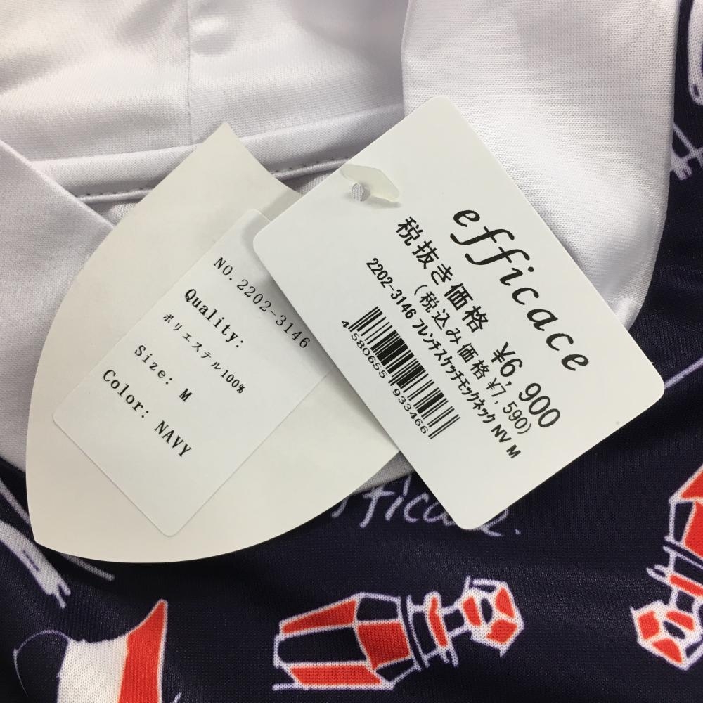 【新品】エフィカス 半袖ハイネックシャツ ネイビー×白 エッフェル塔 国旗 レディース M ゴルフウェア efficace