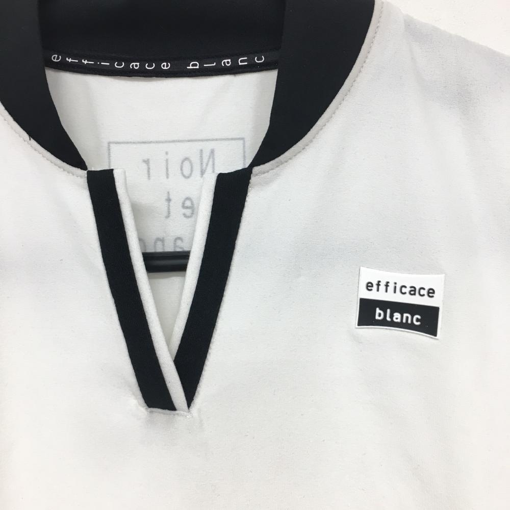 【新品】エフィカスブラン 長袖スキッパーシャツ 白×黒 シリコンロゴ ストレッチ レディース S ゴルフウェア efficace