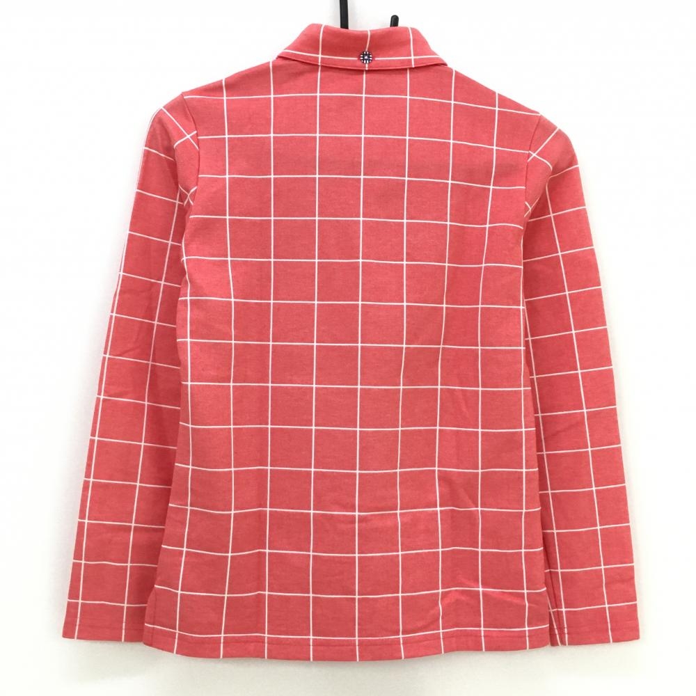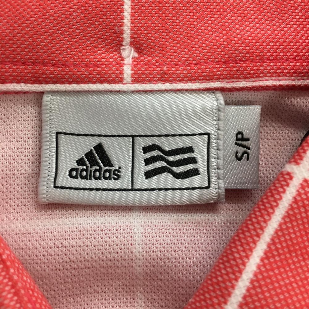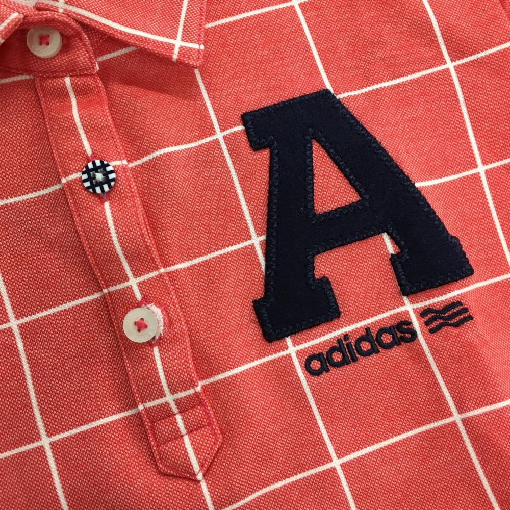 【超美品】アディダス 長袖ポロシャツ レッド×白 格子 チェック 英字ワッペン レディース S/P ゴルフウェア adidas