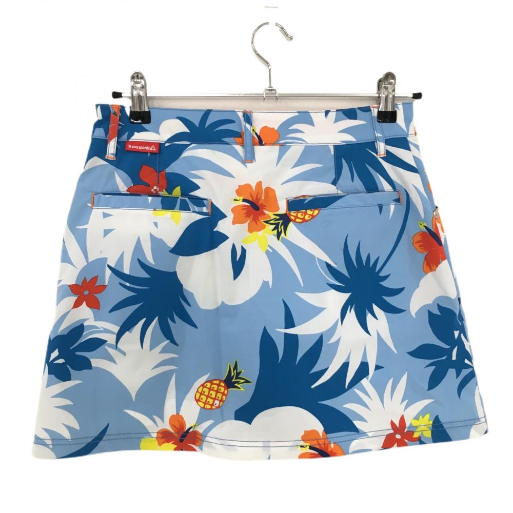 【美品】ルコック スカート ライトブルー×白 花柄 パイナップル柄 内側メッシュ レディース 9 ゴルフウェア le coq sportif