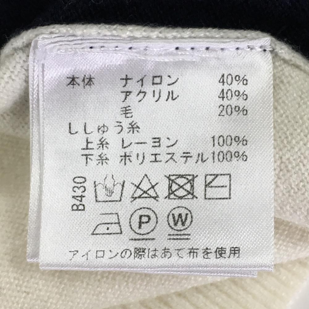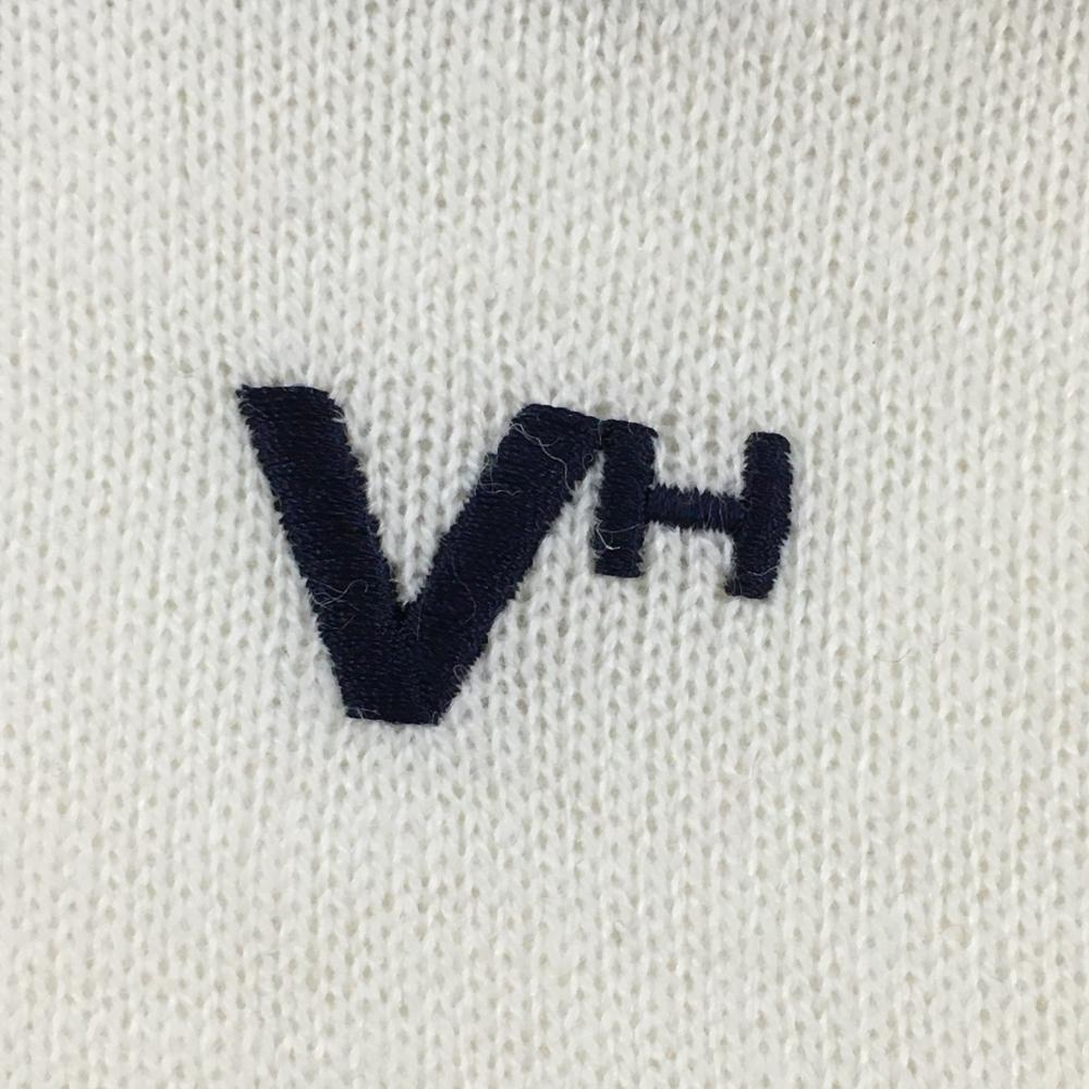 【超美品】ビバハート 襟付きセーター 白×ネイビー ナイロン混 ニット メンズ 50(L) ゴルフウェア VIVA HEART