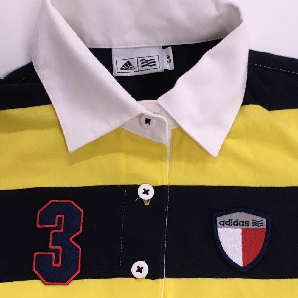 アディダス 長袖ポロシャツ イエロー×ネイビー ボーダー レディース S/P ゴルフウェア adidas