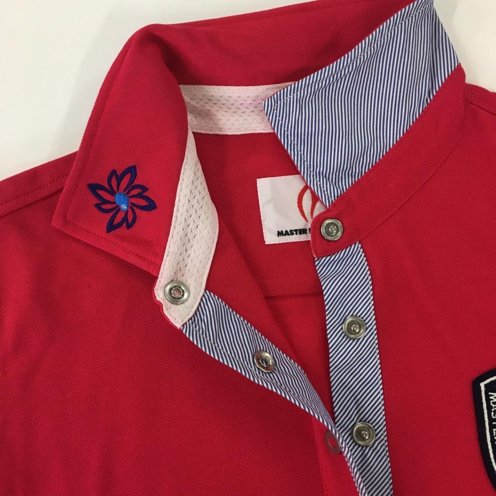 マスターバニー 半袖ポロシャツ レッド×ネイビー ワッペン 前立てボーダー レディース 1(M) ゴルフウェア MASTER BUNNY EDITION