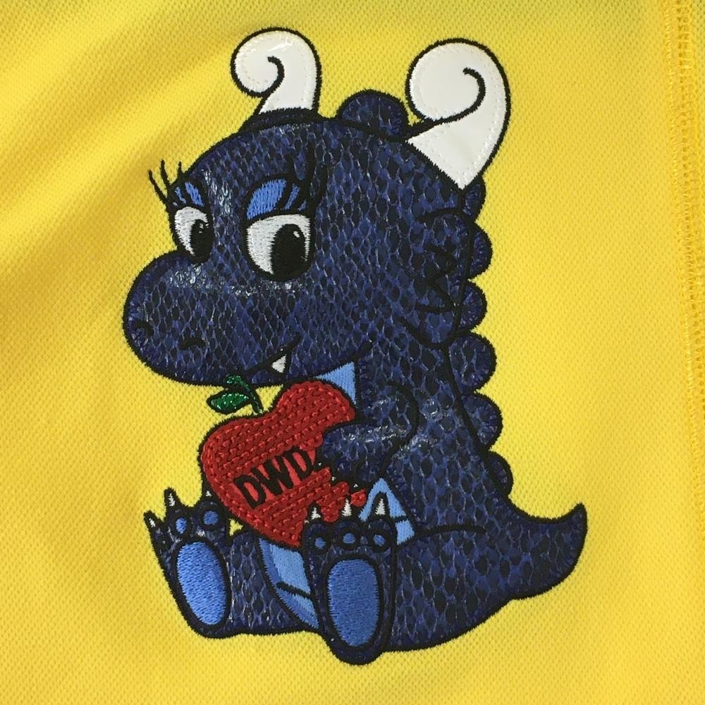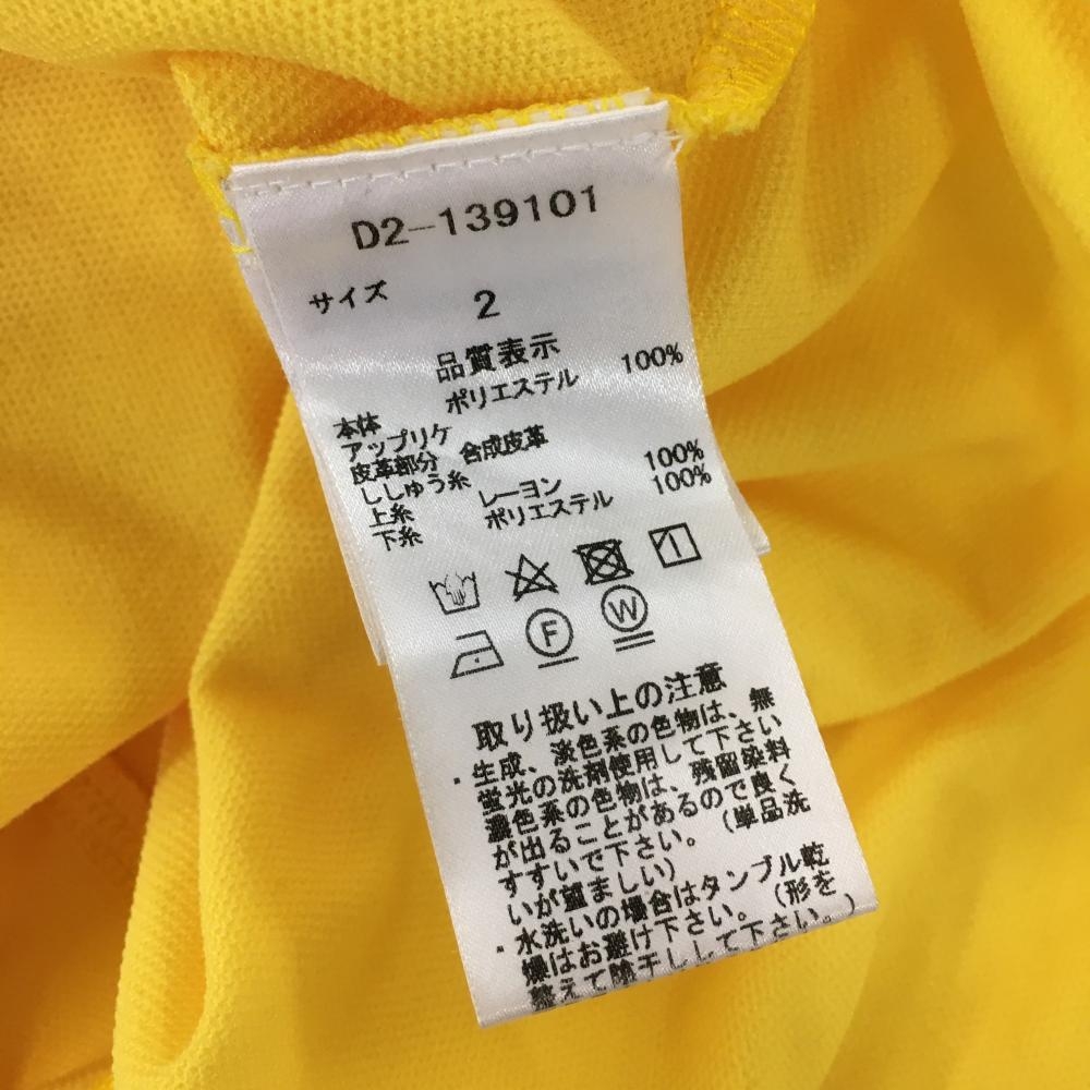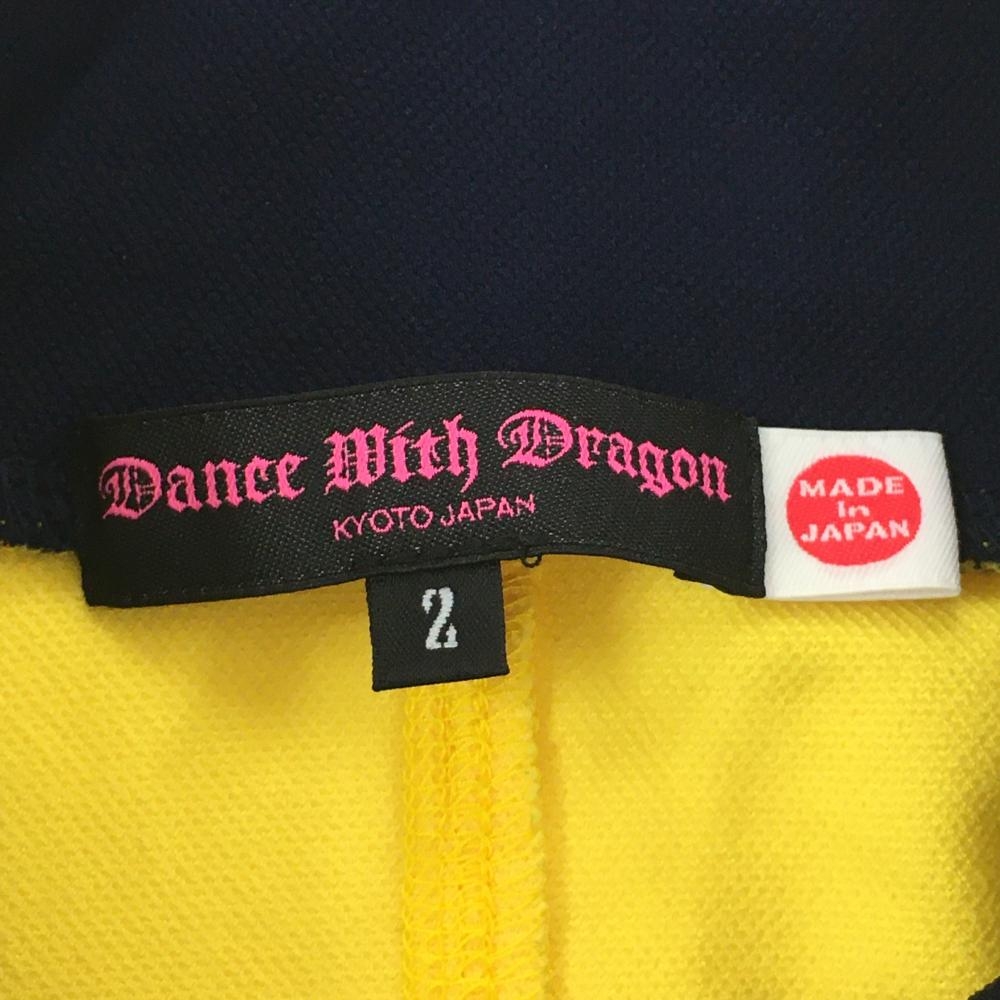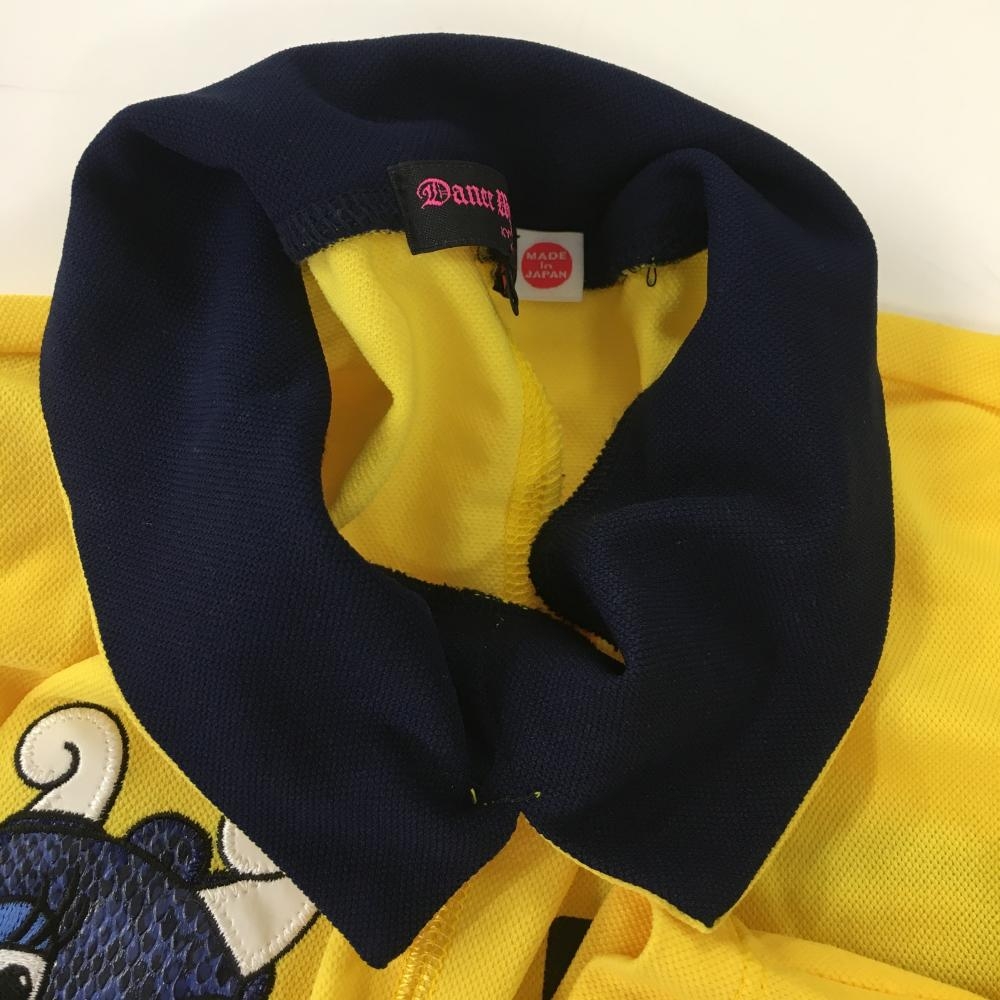 【美品】ダンスウィズドラゴン 襟付き長袖シャツ イエロー×ネイビー チビドラ レディース 2(M) ゴルフウェア Dance With Dragon