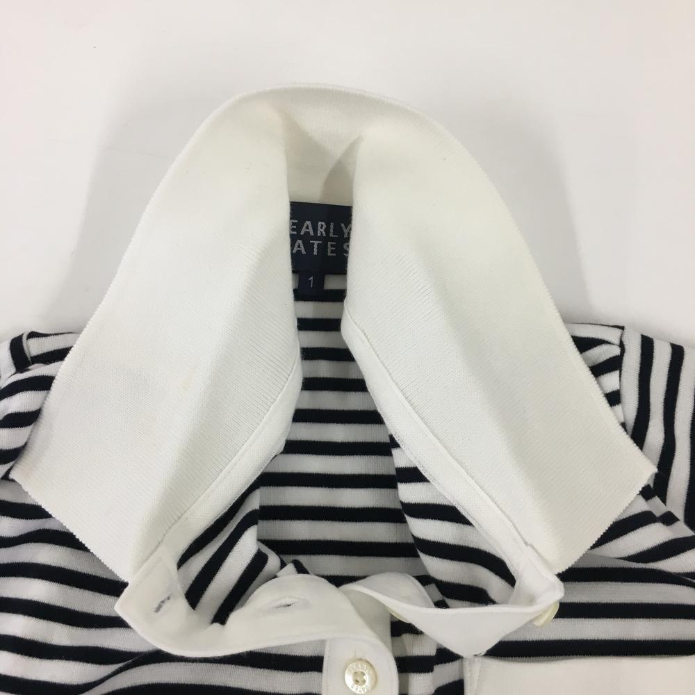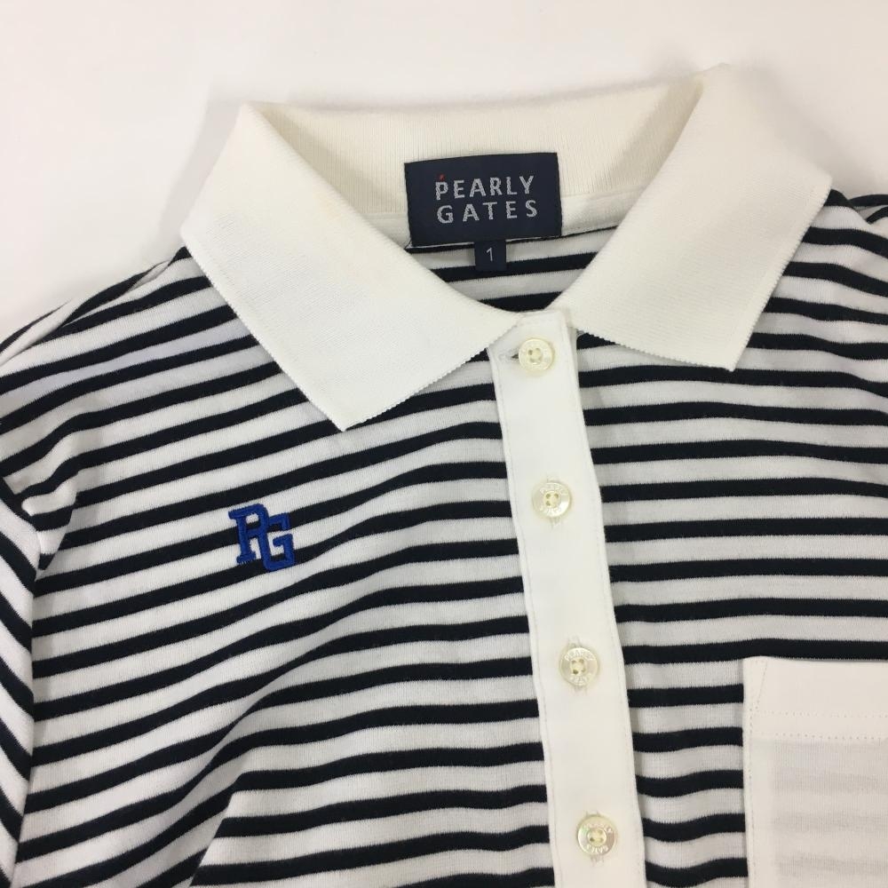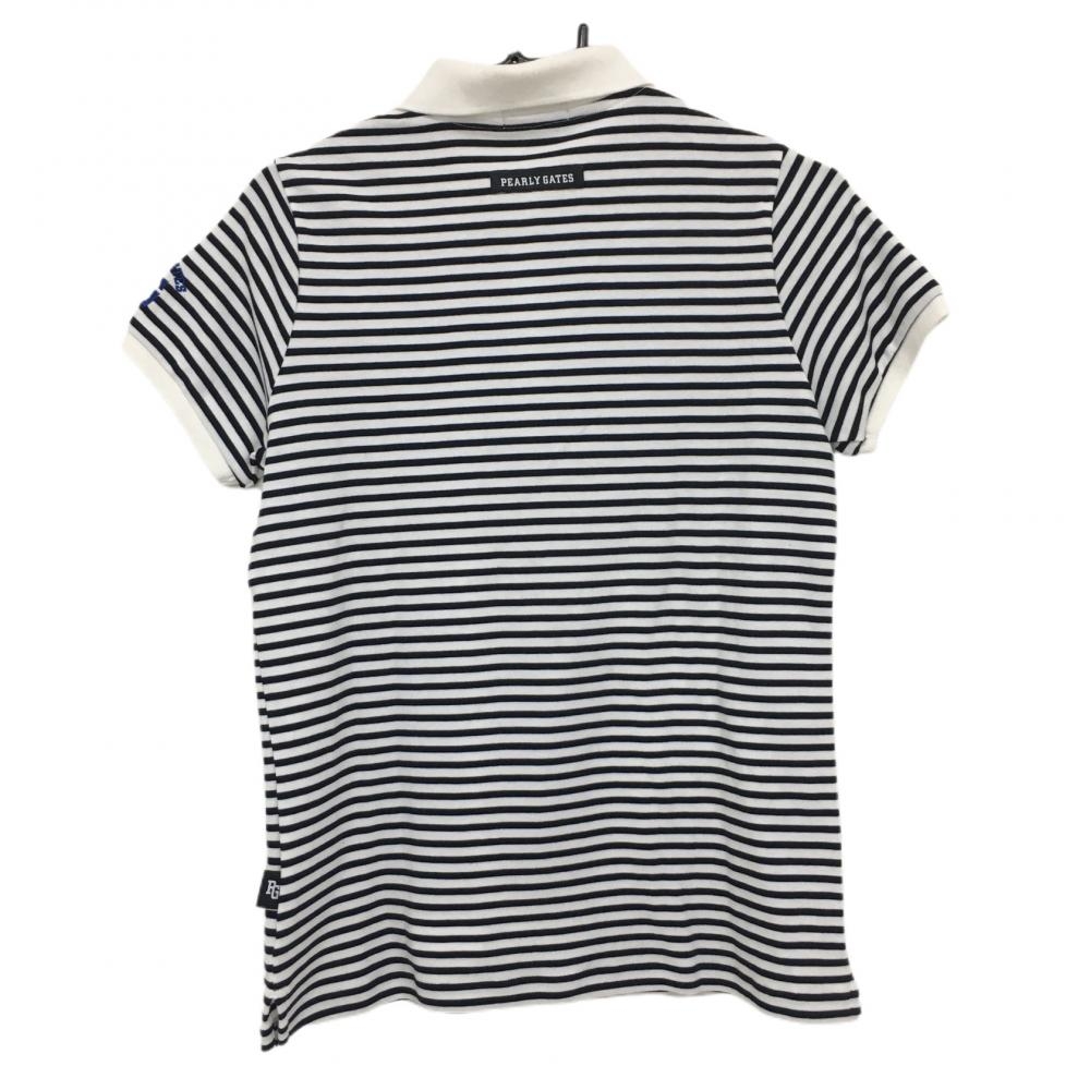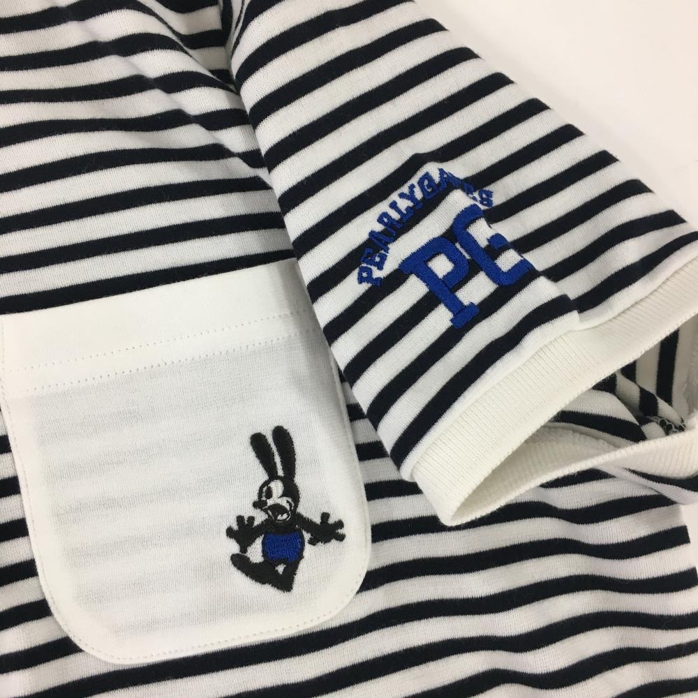 【美品】パーリーゲイツ×ディズニー 半袖ポロシャツ 黒×白 ボーダー オズワルド レディース 1(M) ゴルフウェア PEARLY GATES
