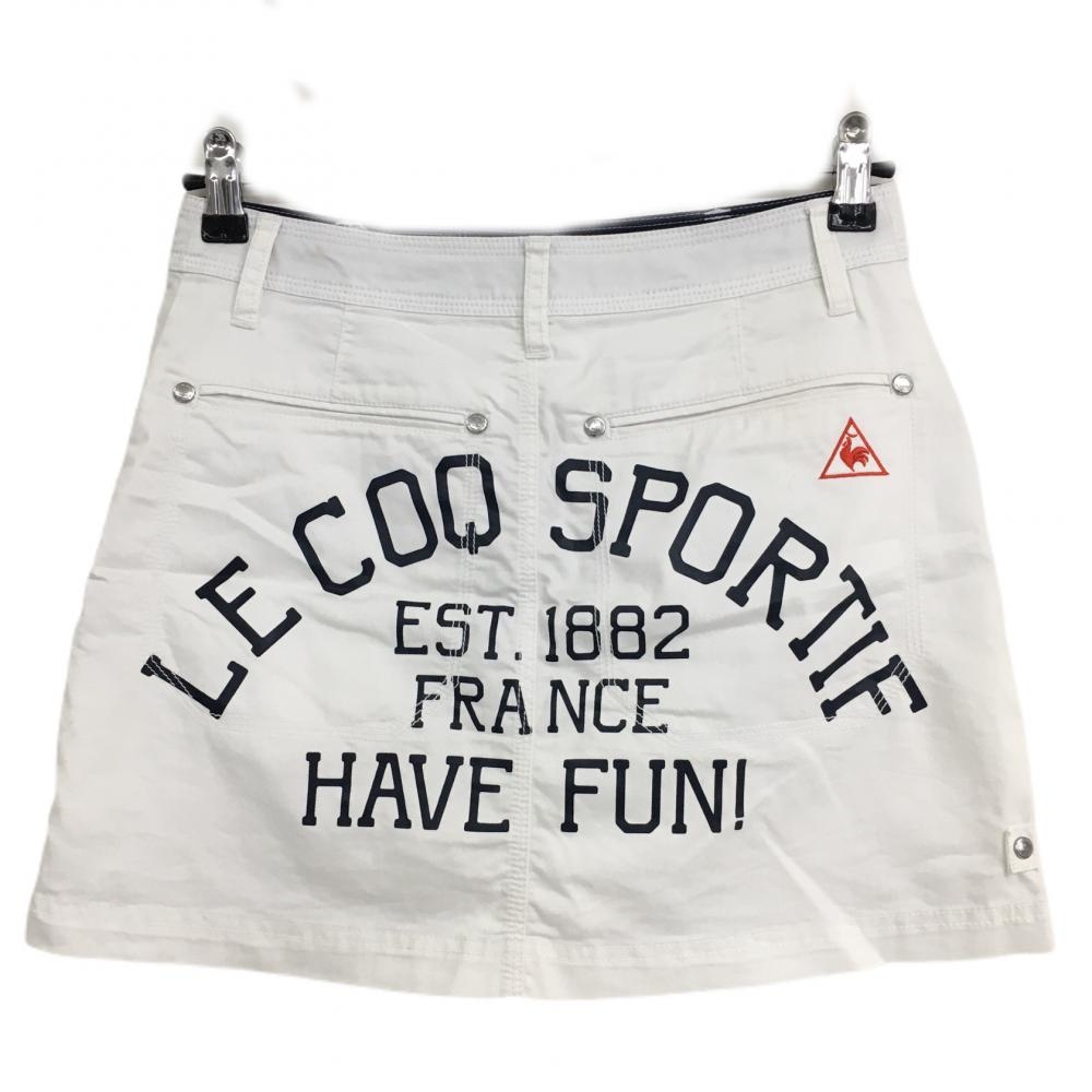 【美品】ルコック スカート 白×ネイビー バックプリント ティー装着可 内側インナーパンツ レディース 7 ゴルフウェア le coq sportif
