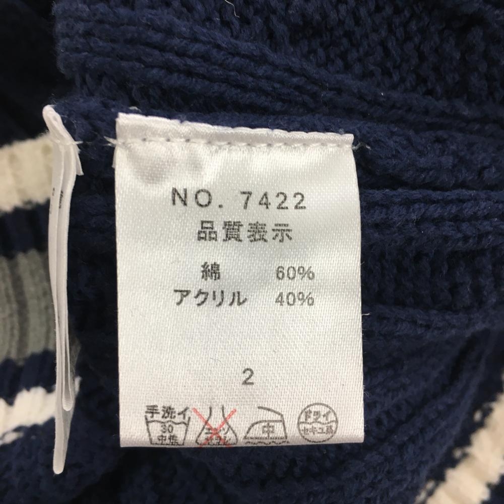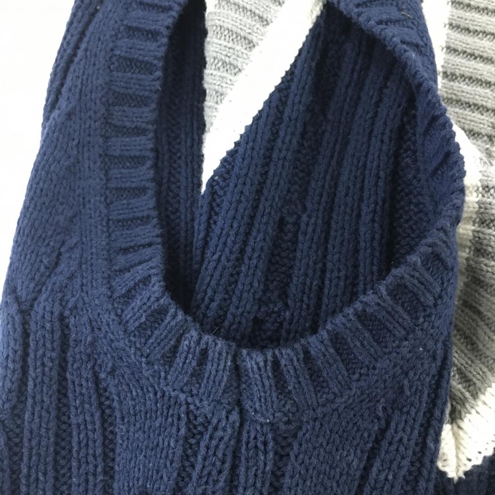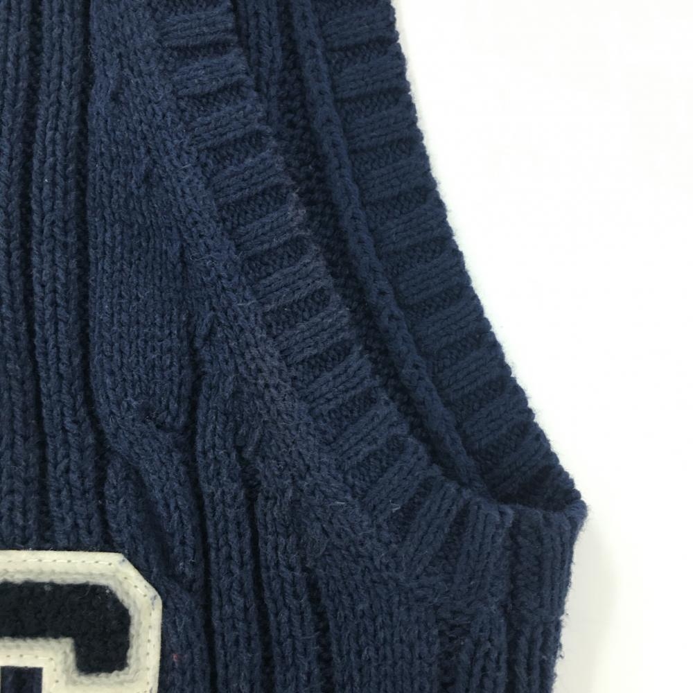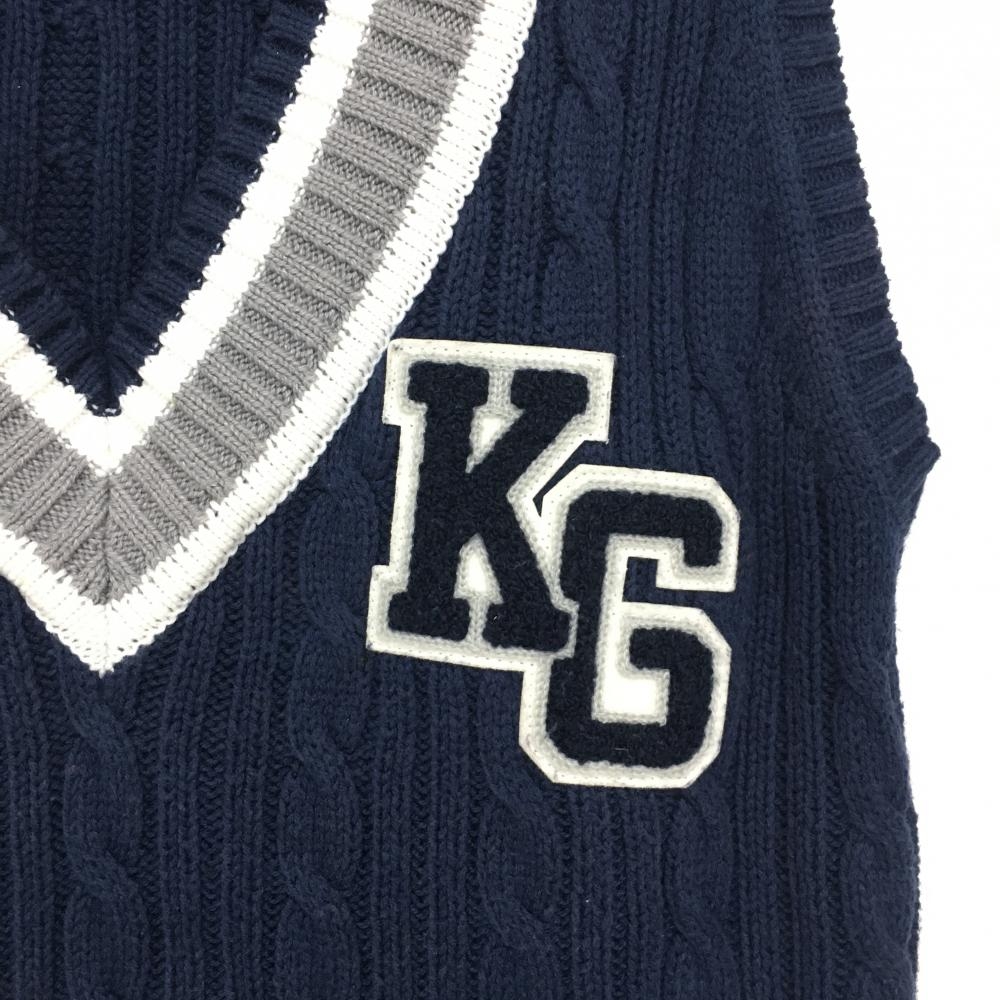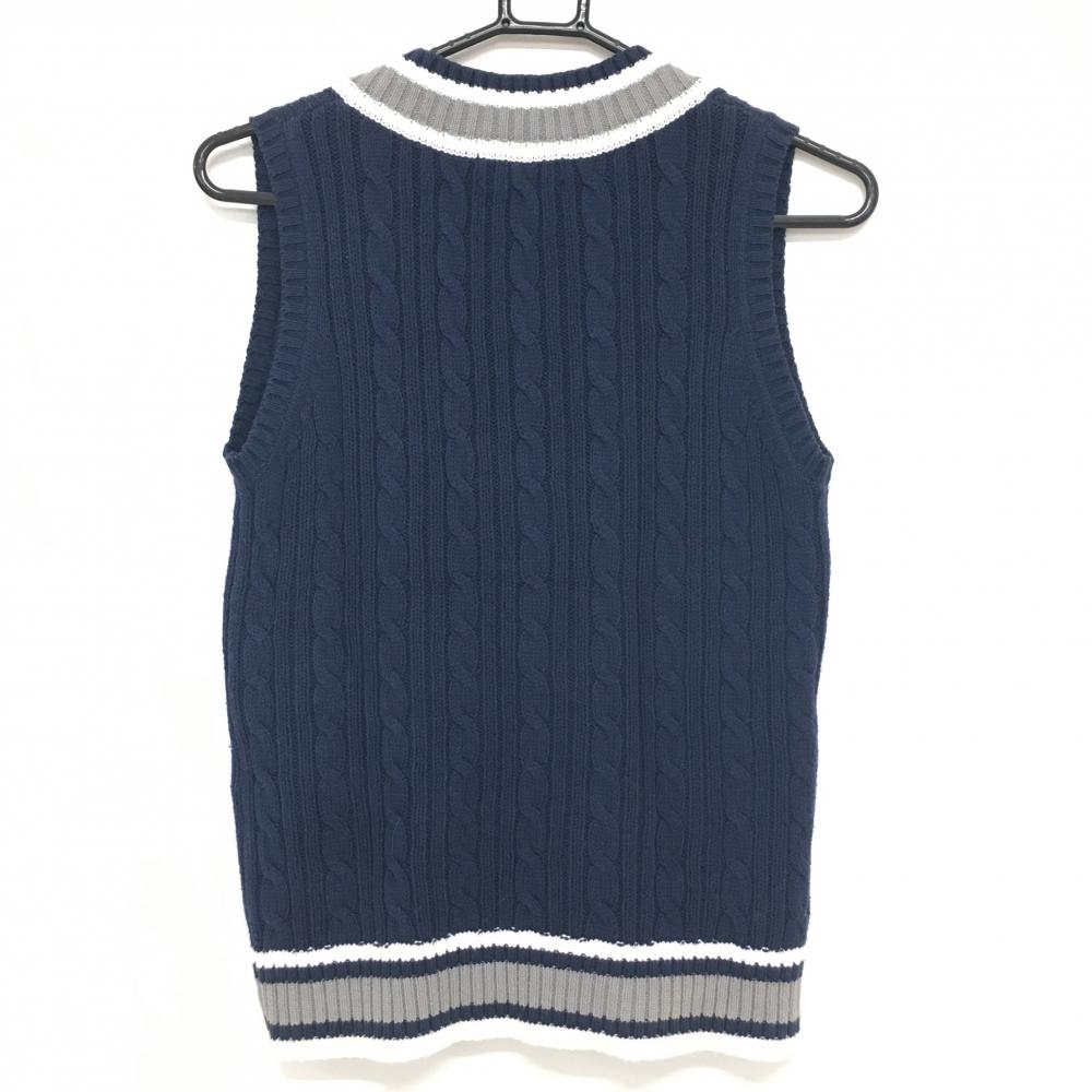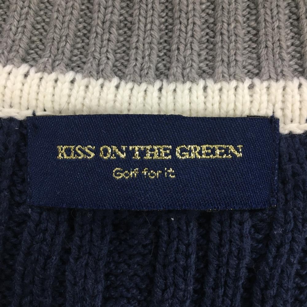 【美品】キスオンザグリーン ニットベスト ネイビー×白 Vネック ケーブル編み レディース 2(M) ゴルフウェア kiss on the green