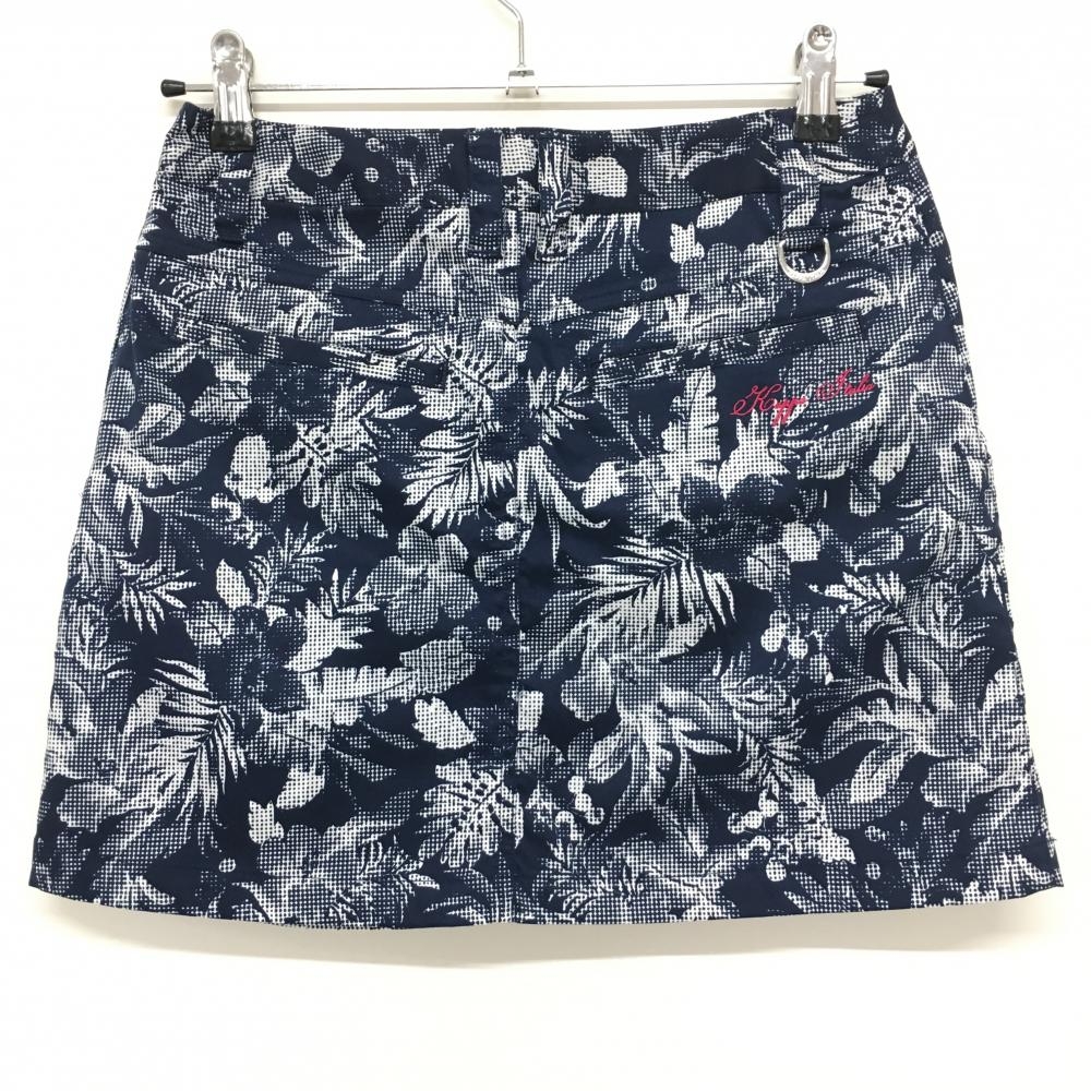 【超美品】カッパ スカート ネイビー×白 リーフ柄 ストレッチ レディース S ゴルフウェア Kappa