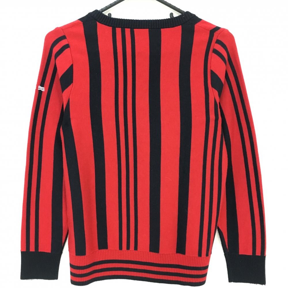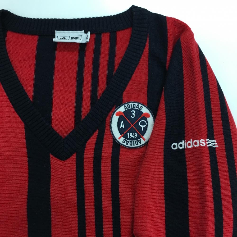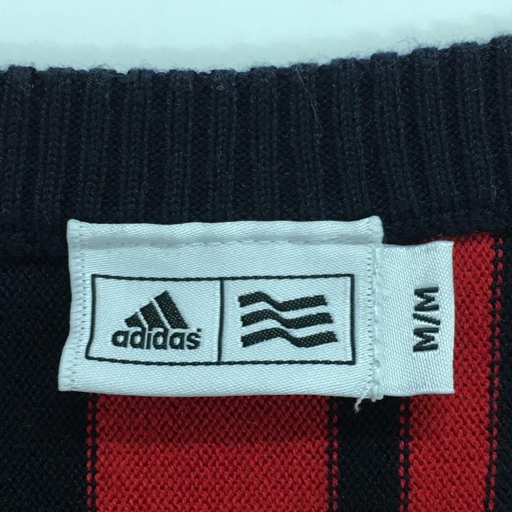 【美品】アディダス セーター レッド×ネイビー ストライプ Vネック レディース M/M ゴルフウェア adidas