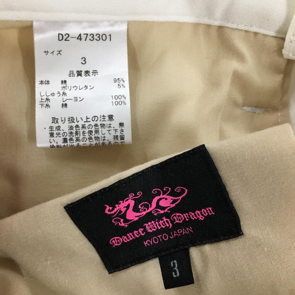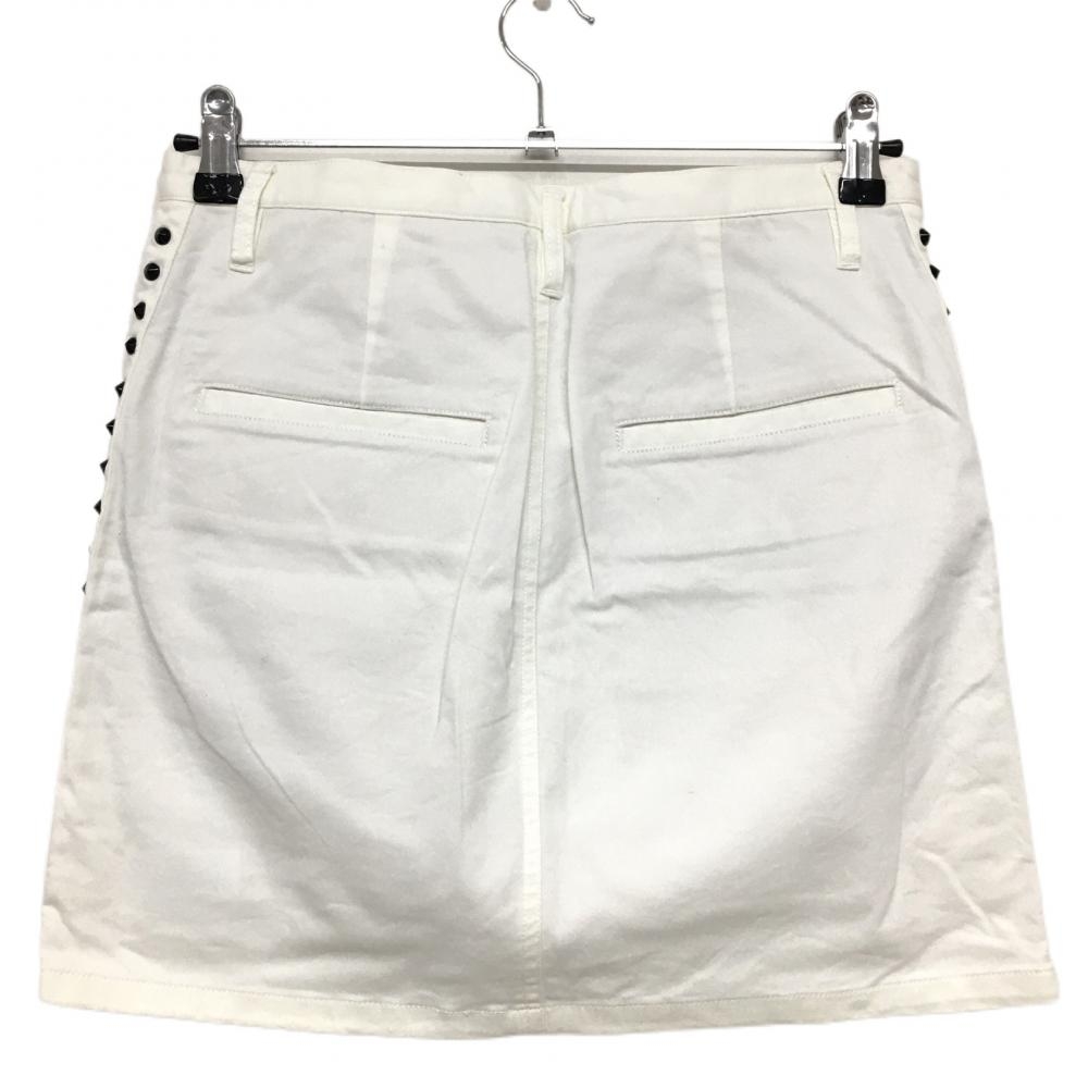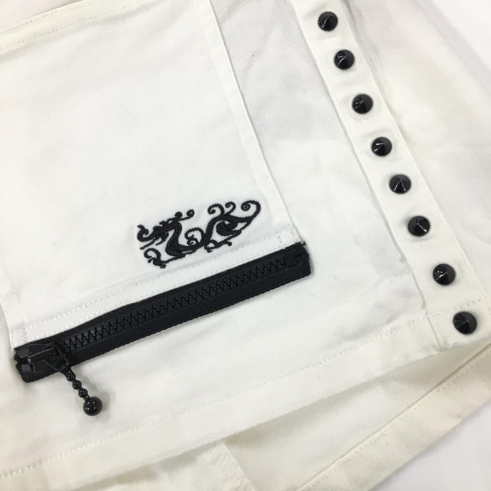 【美品】ダンスウィズドラゴン スカート 白×黒 サイドスタッズ レディース 3(L) ゴルフウェア Dance With Dragon