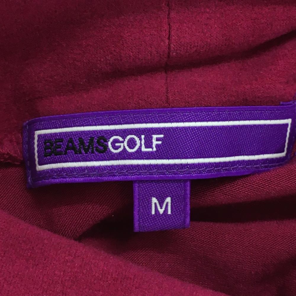 【超美品】ビームスゴルフ 長袖ハイネックシャツ レッドピンク ロゴワッペン レディース M ゴルフウェア BEAMS GOLF