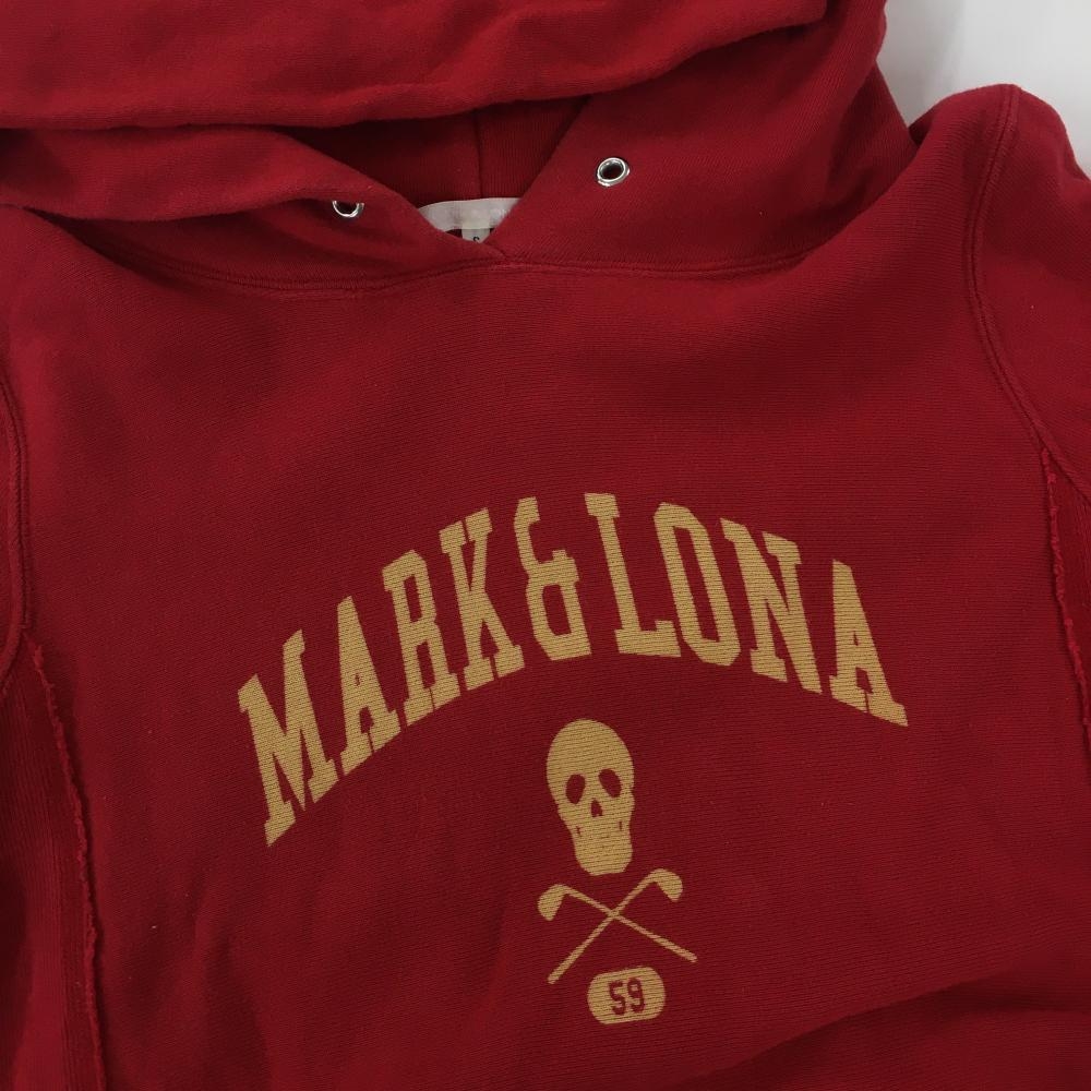 【美品】マークアンドロナ 長袖パーカーワンピース レッド×イエロー スウェット コットン100% レディース S ゴルフウェア MARK&LONA