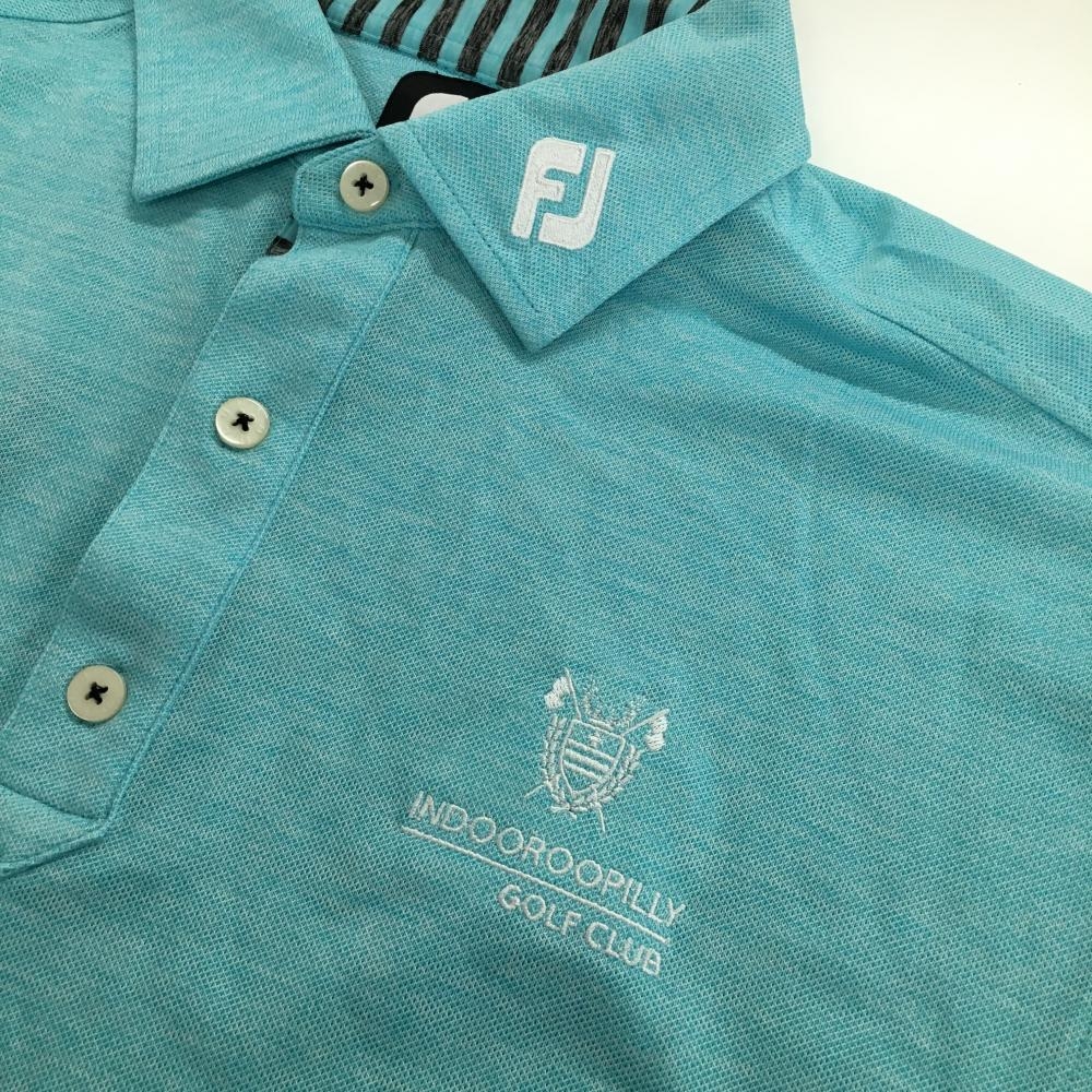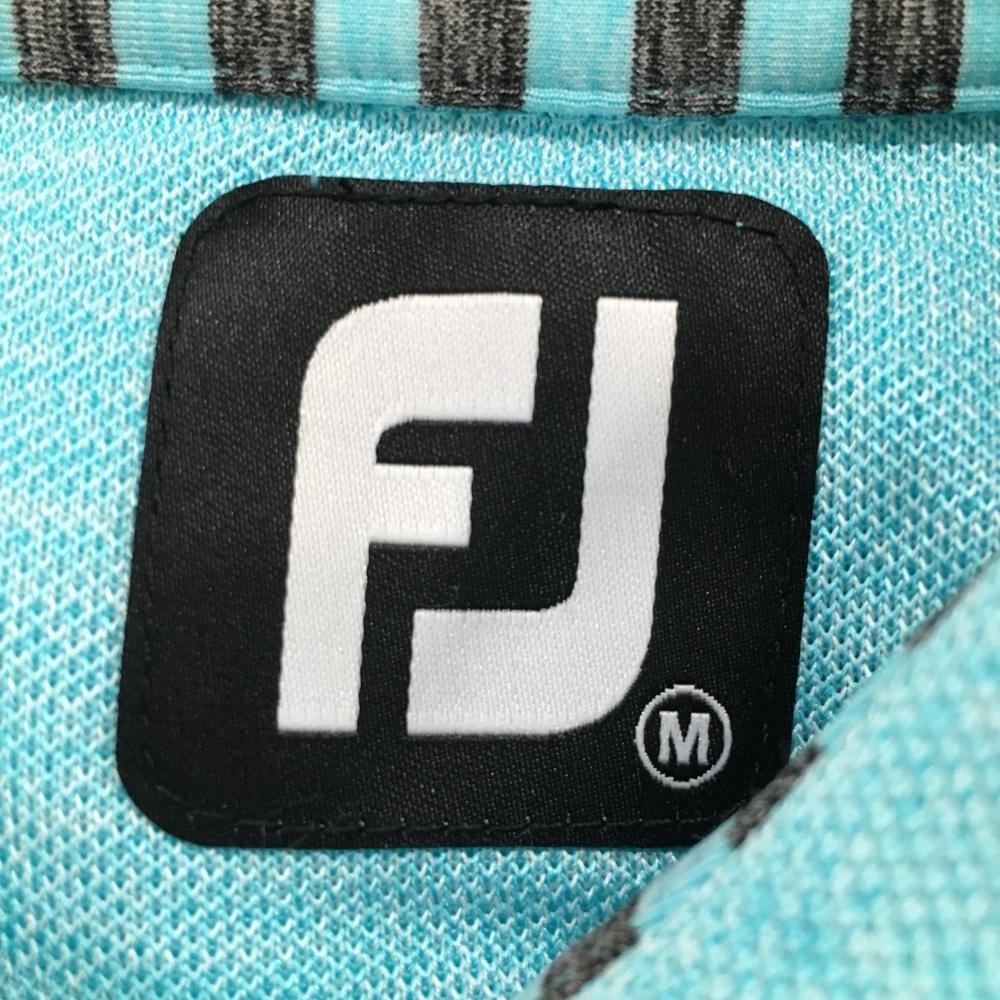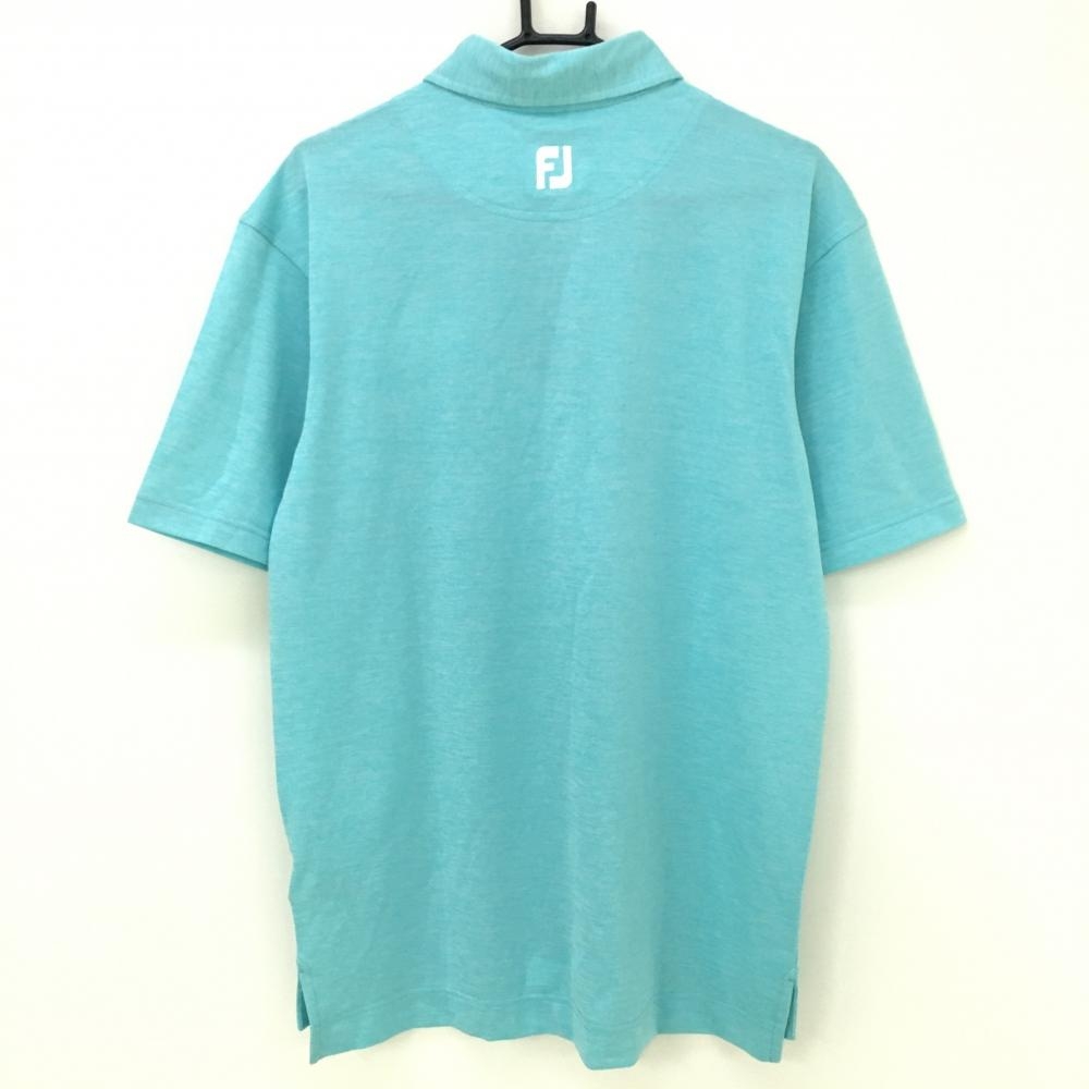 【美品】フットジョイ 半袖ポロシャツ ライトブルー 胸元刺しゅう ネックロゴ メンズ M ゴルフウェア FootJoy