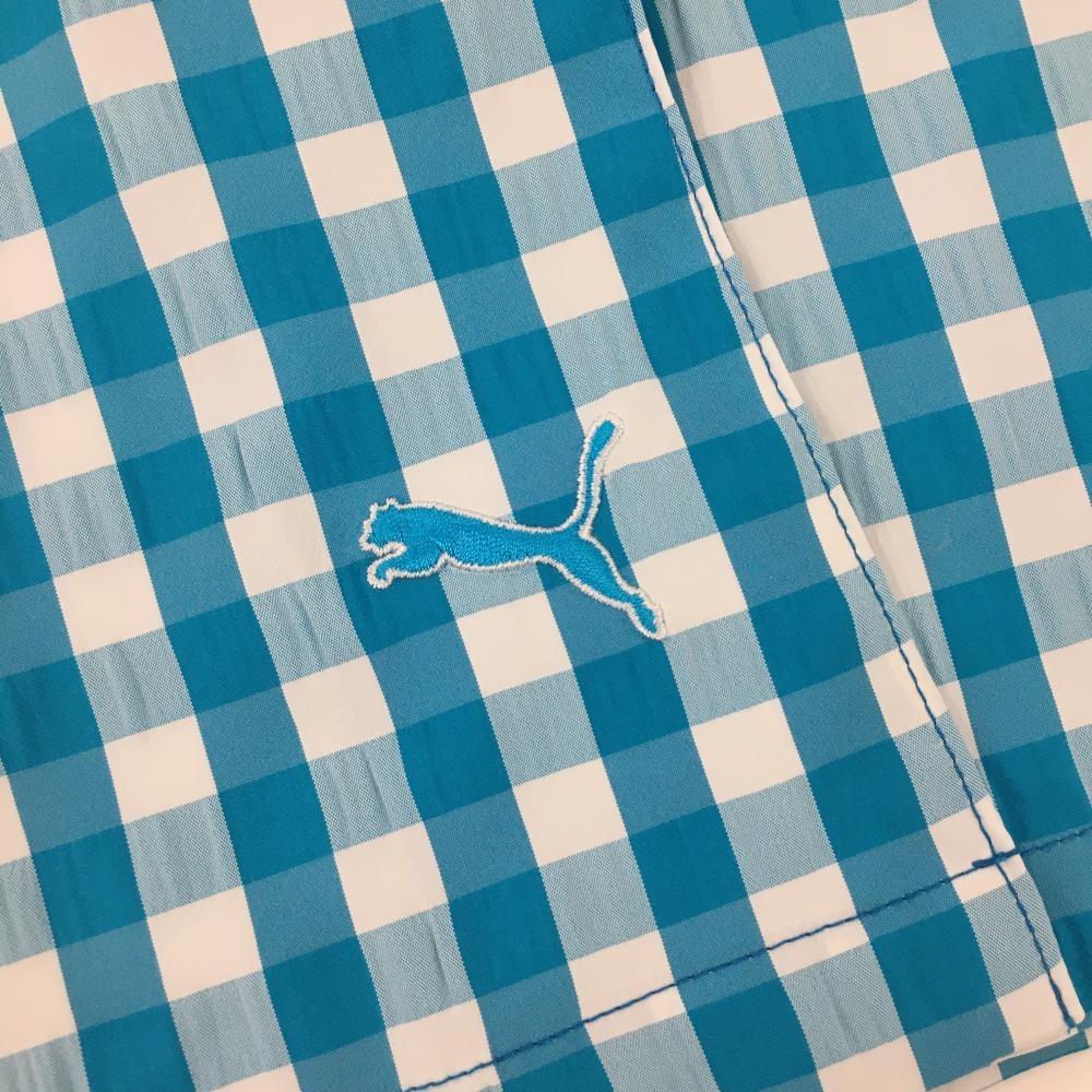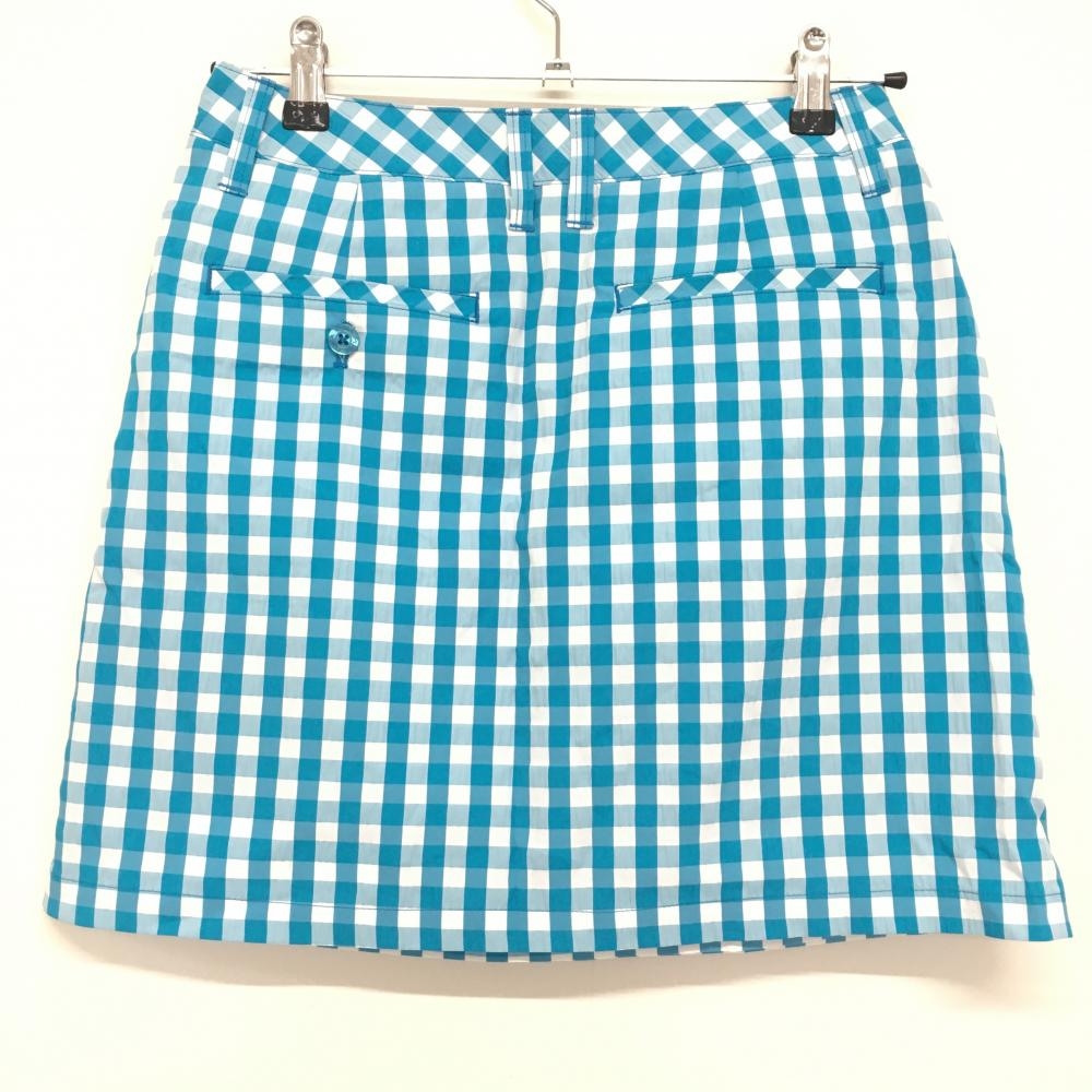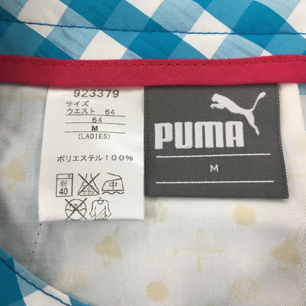 【超美品】プーマ スカート ライトブルー×白 チェック サッカー生地風 レディース M ゴルフウェア PUMA